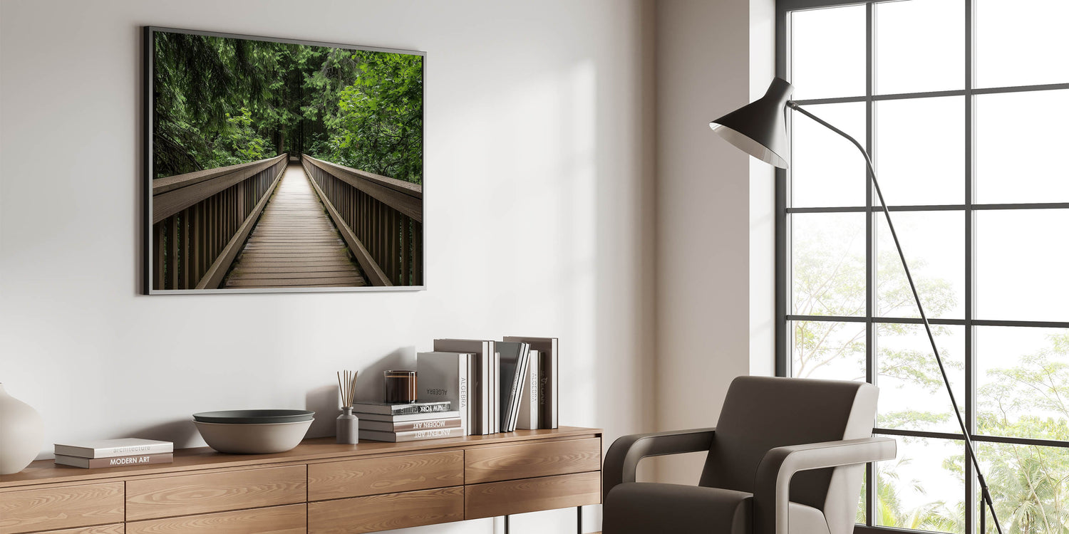 - High-quality bridge canvas prints available in Stretched Canvas, Framed Canvas, and Acrylic Glass.