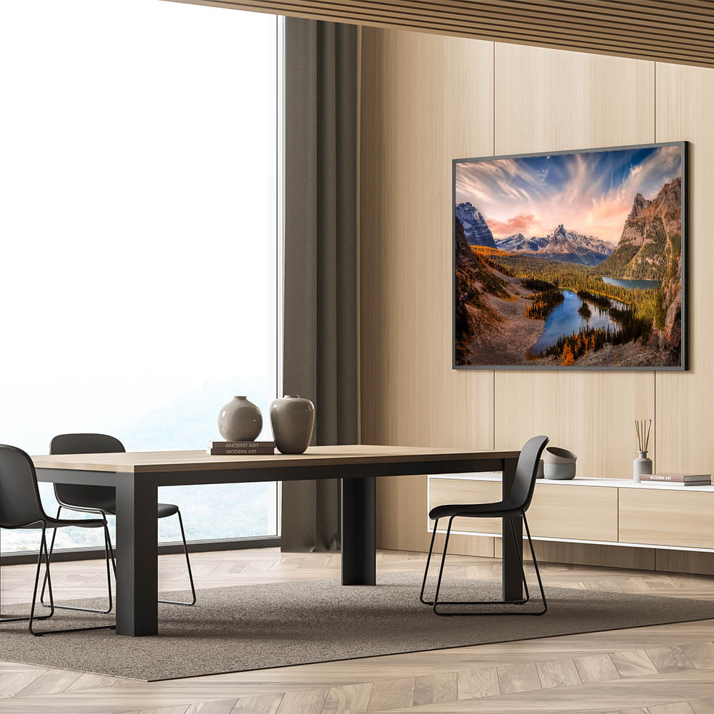 Transform your space with this unique piece of art that showcases the beauty of British Columbia’s vibrant autumn colors, peaceful lakes, and majestic mountains. This artwork blends perfectly with rustic, contemporary, and modern decor styles, making it a versatile choice for any setting.