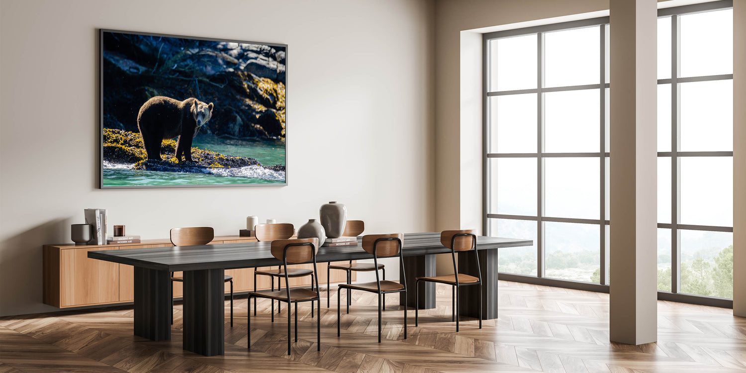 Transform your space with this unique piece of art that showcases the majestic wildlife and rugged landscapes of British Columbia. This artwork blends perfectly with rustic, contemporary, and modern decor styles, making it a versatile choice for any setting.
