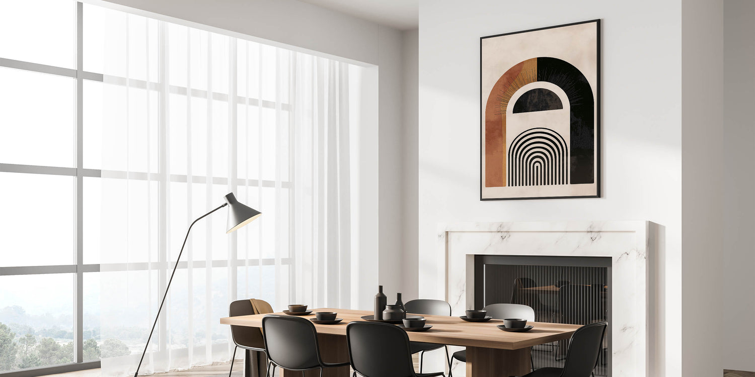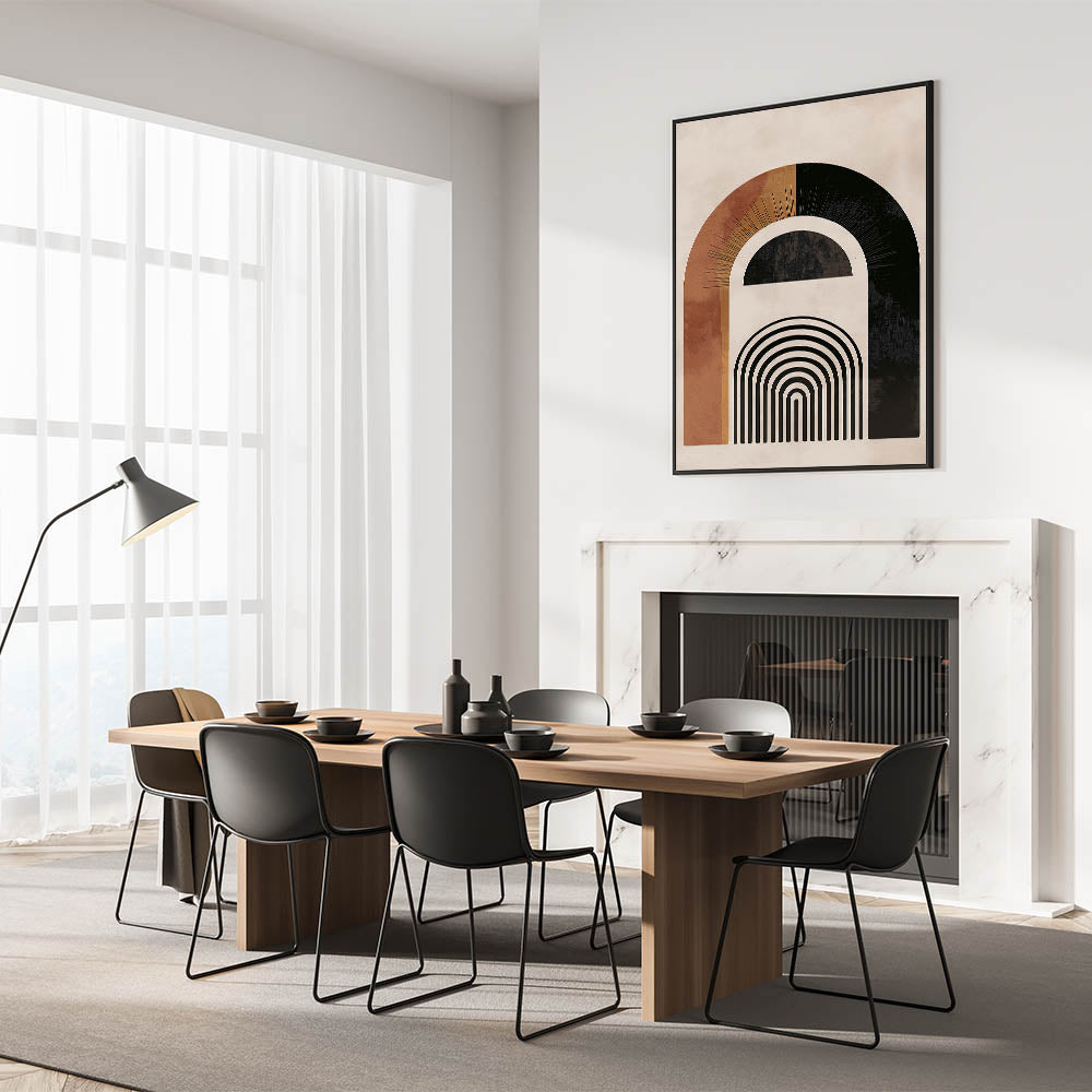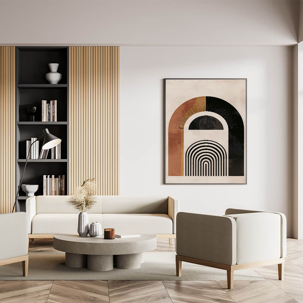 This design is ideal for creating a statement wall or adding an artistic touch to any space. The abstract arches and sun-inspired elements make it a versatile addition to both contemporary and bohemian-style interiors. Choose from various formats to best suit your home decor.