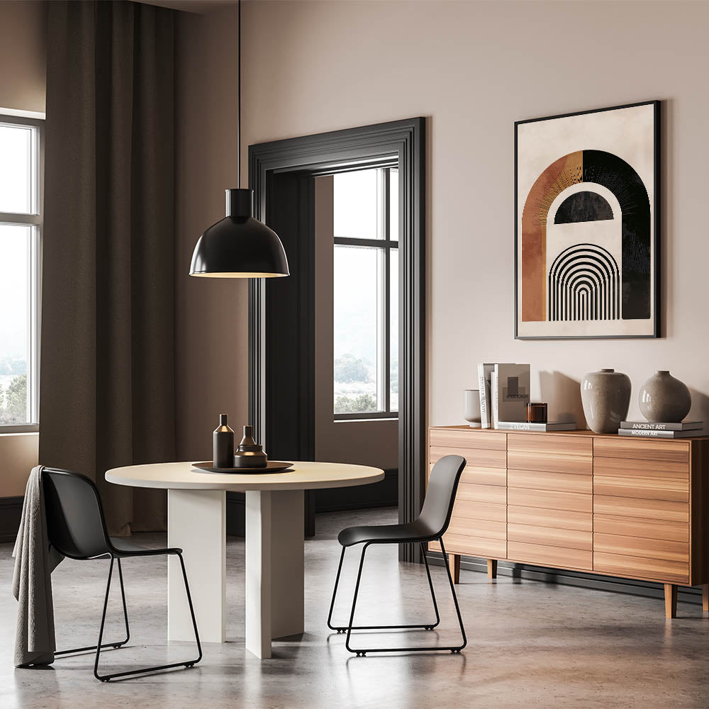 Infuse your home with a sense of modern elegance through this striking Bohemian wall art. The abstract arch design combines bold geometric shapes with earthy tones, creating a captivating visual that brings warmth and character to your space. Perfect for eclectic, boho-chic, or modern interiors, this piece of art is a testament to artistic minimalism and bohemian charm.