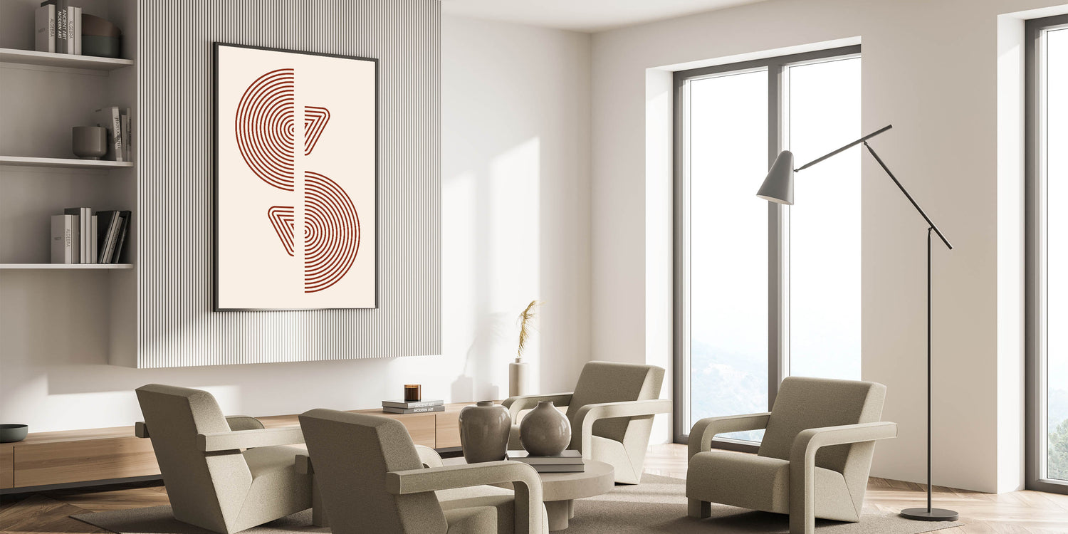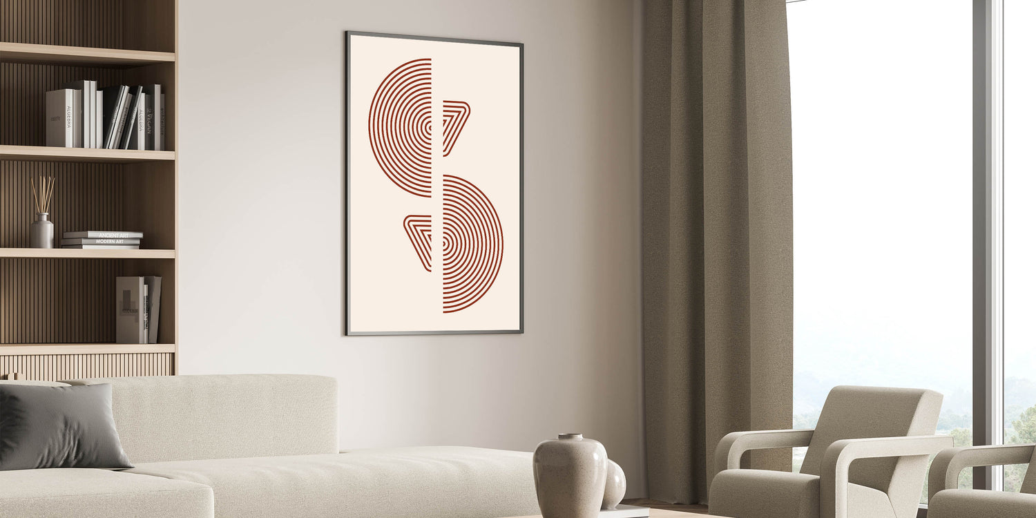 This bohemian wall decor is a perfect choice for those who love minimalist yet impactful designs. The warm rust hue and artistic geometric patterns make it a versatile piece that complements various decor styles, from modern to boho chic. Whether displayed in a living room or an office, this boho canvas print will add a touch of artistic flair to your space.