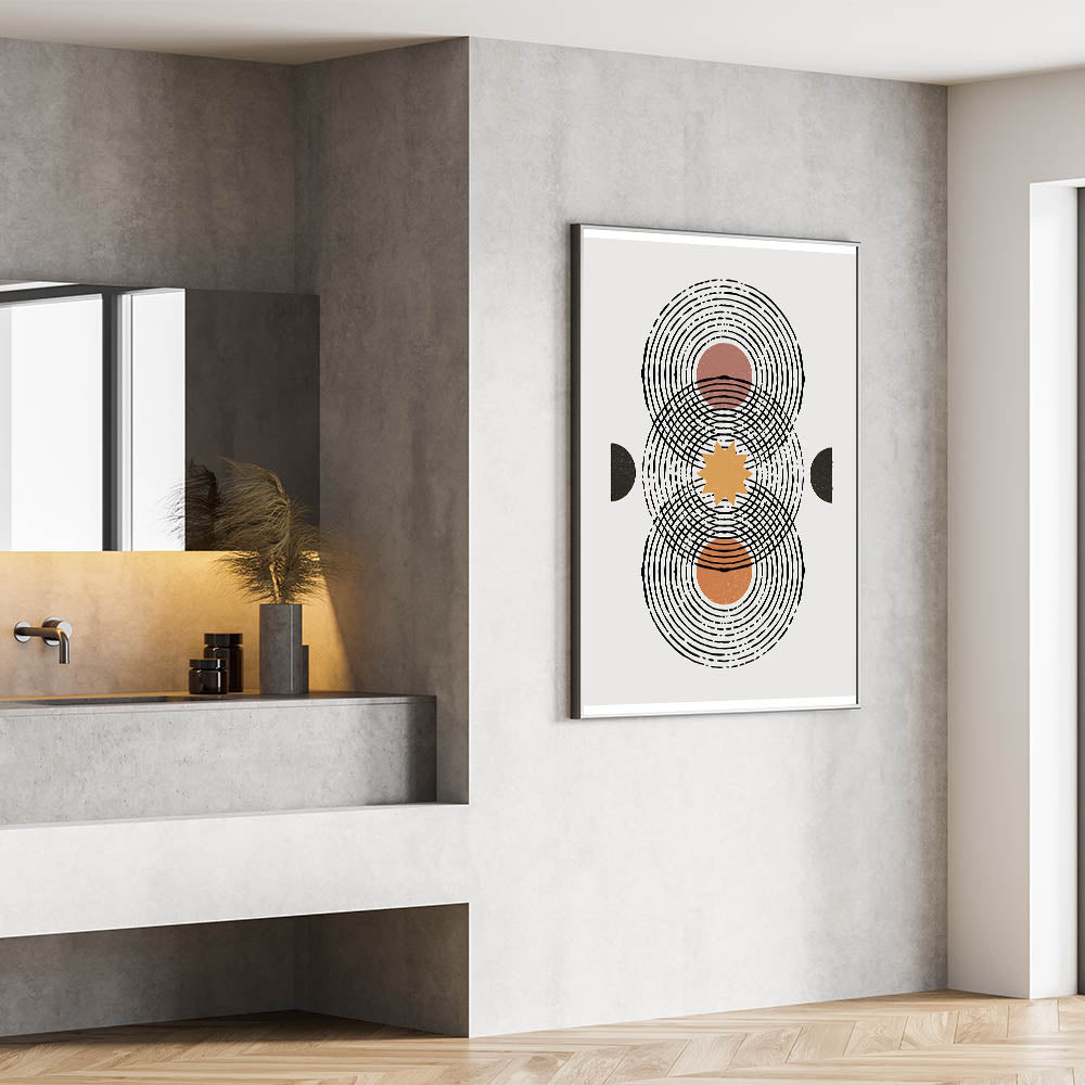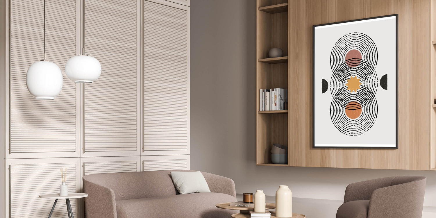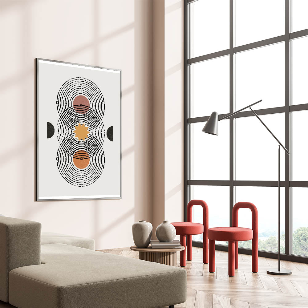 This geometric Bohemian art print blends abstract design with earthy tones, making it a versatile piece that fits seamlessly into eclectic and modern spaces alike.