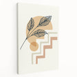 This captivating boho-inspired geometric leaf art piece brings a harmonious blend of nature and abstract geometry to your home decor. The minimalist black leaf design stands out against a soft beige circle, with complementing geometric lines in neutral shades of cream and tan. The organic form of the leaves contrasts beautifully with the structured lines, creating a modern yet earthy composition that is perfect for bohemian or minimalist interiors.