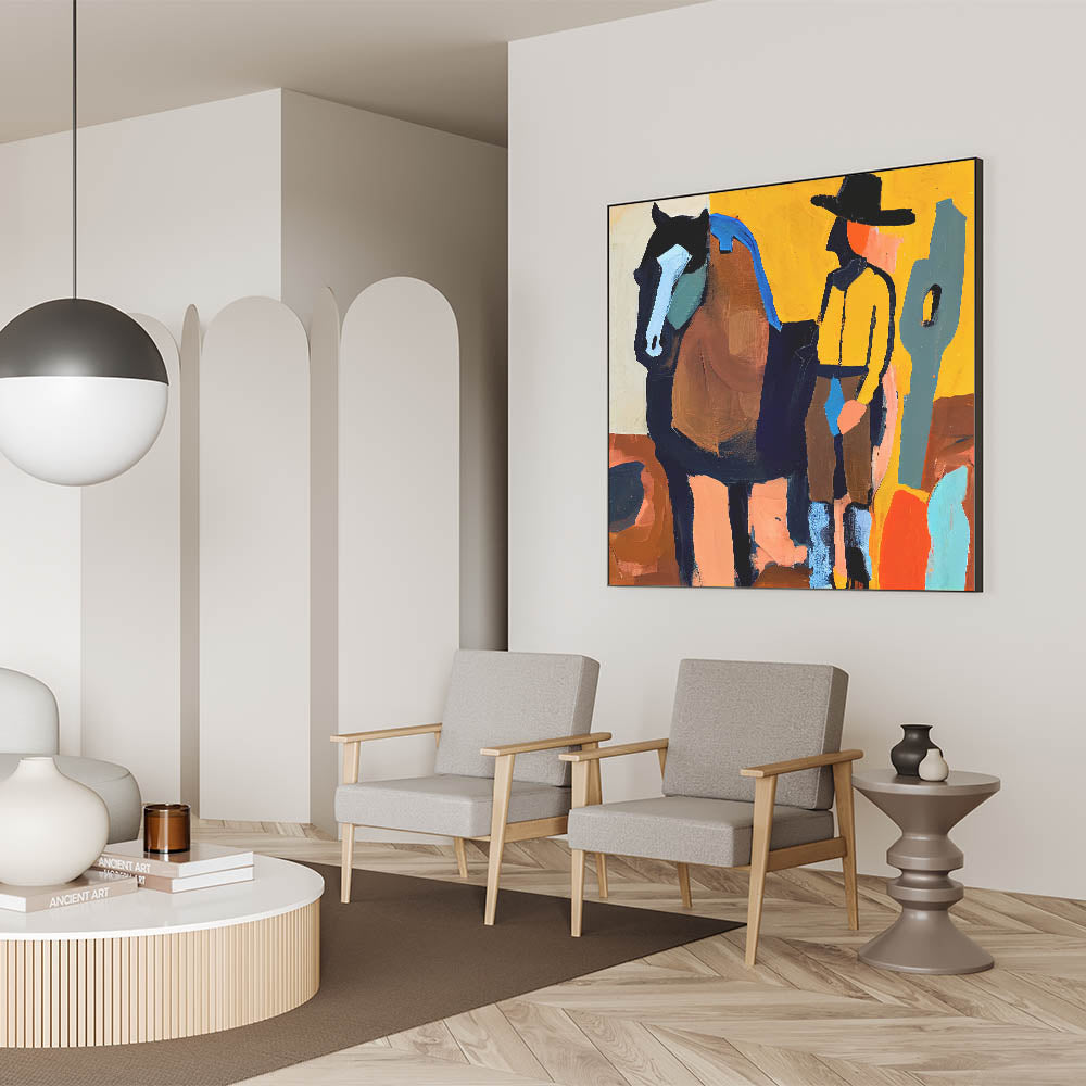 - Vibrant Design: A modern abstract take on Western-inspired subjects, creating a unique visual experience.