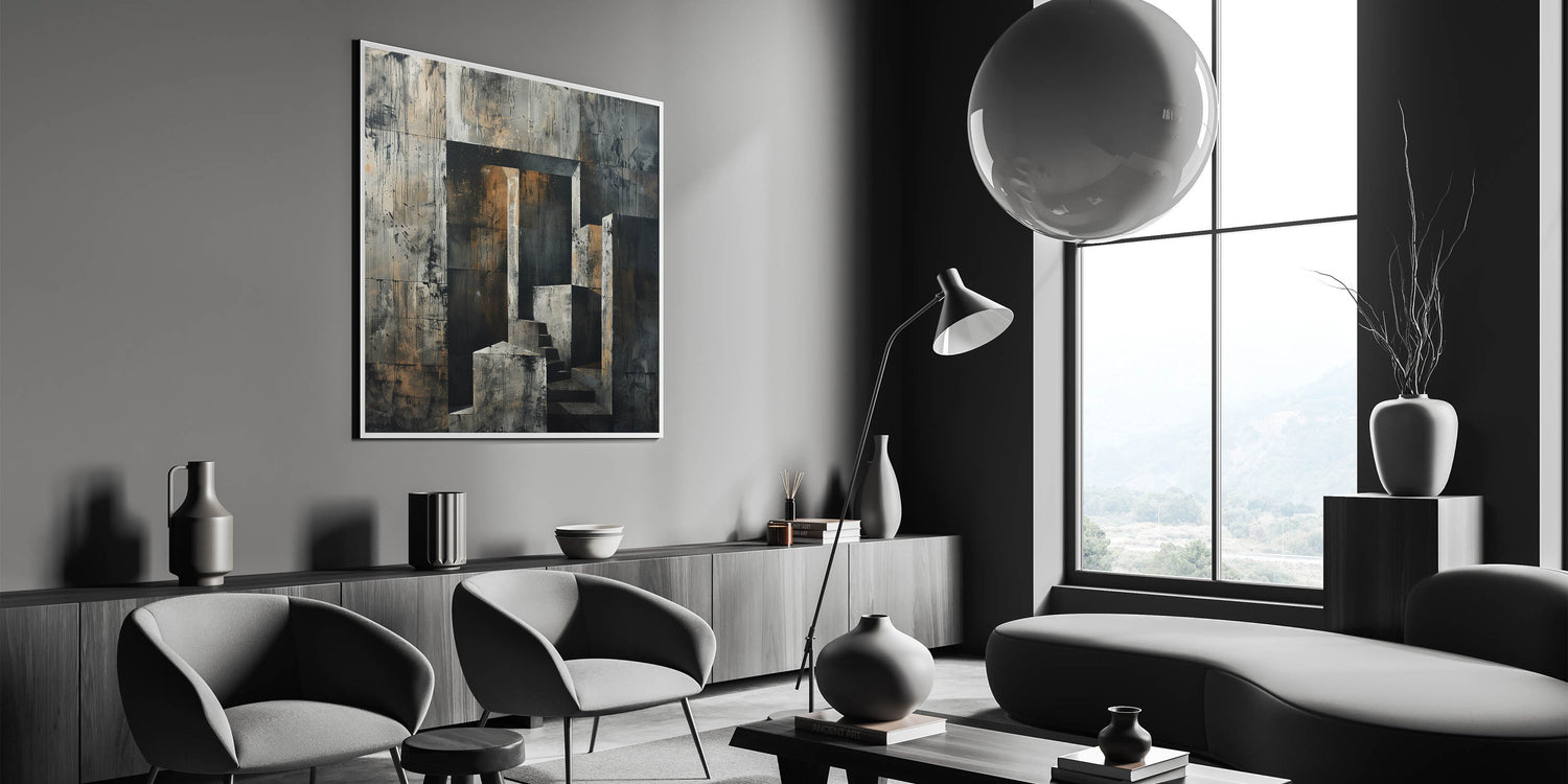 This artwork brings together the raw, unrefined beauty of concrete with the simplicity of geometric design, making it an eye-catching centerpiece in any space. Whether you're designing a modern home or adding industrial flair to a professional setting, this Brutalist art print is sure to make an impact.