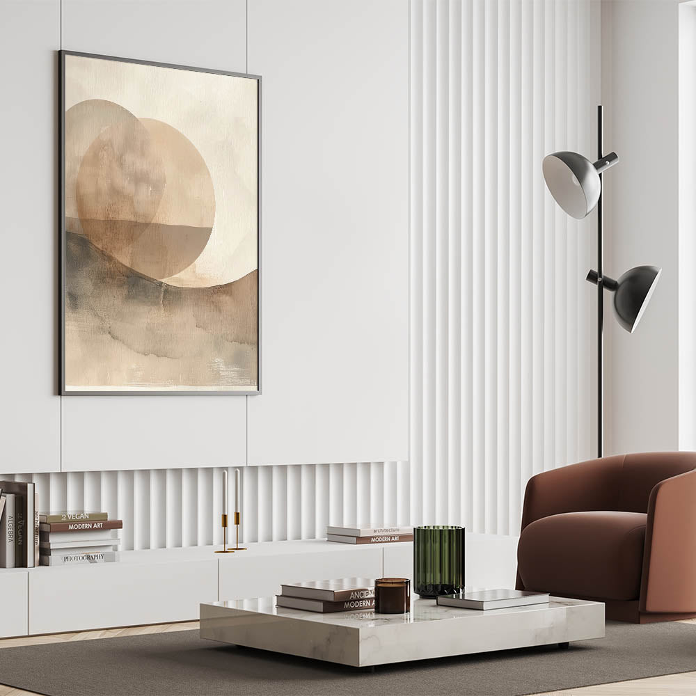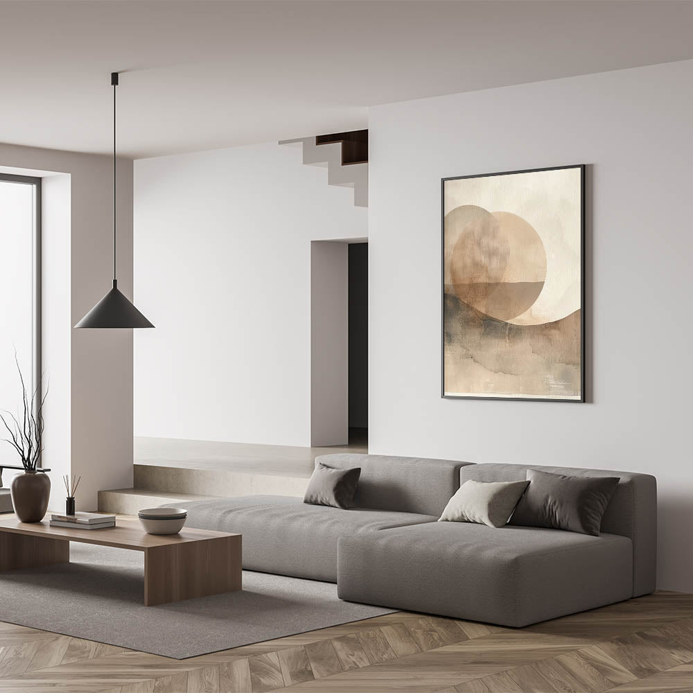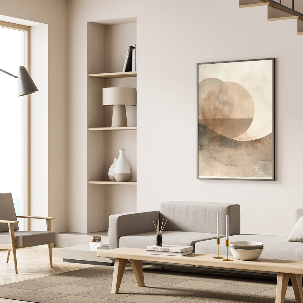 Create a serene atmosphere with this Calming Earthy Tones Abstract Art. Featuring soft, overlapping circles and a natural, flowing composition in warm beige and taupe tones, this artwork evokes a sense of tranquility. Its gentle landscape-inspired forms and neutral color palette make it an ideal addition for minimalist or rustic decor, adding a subtle elegance to any space.