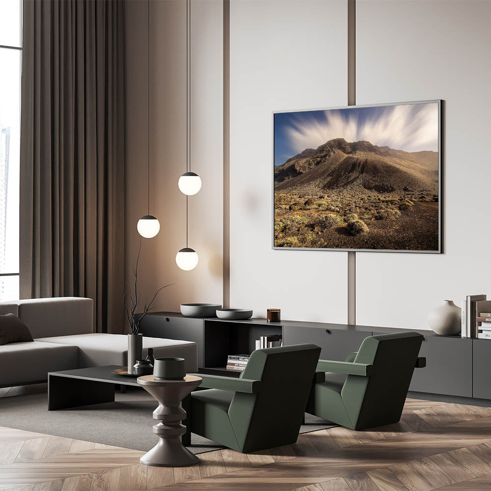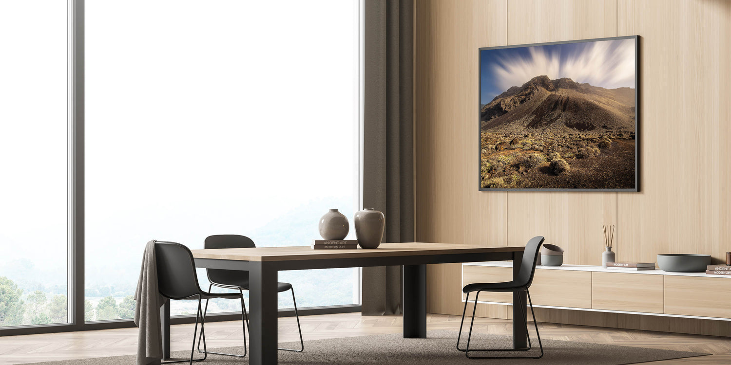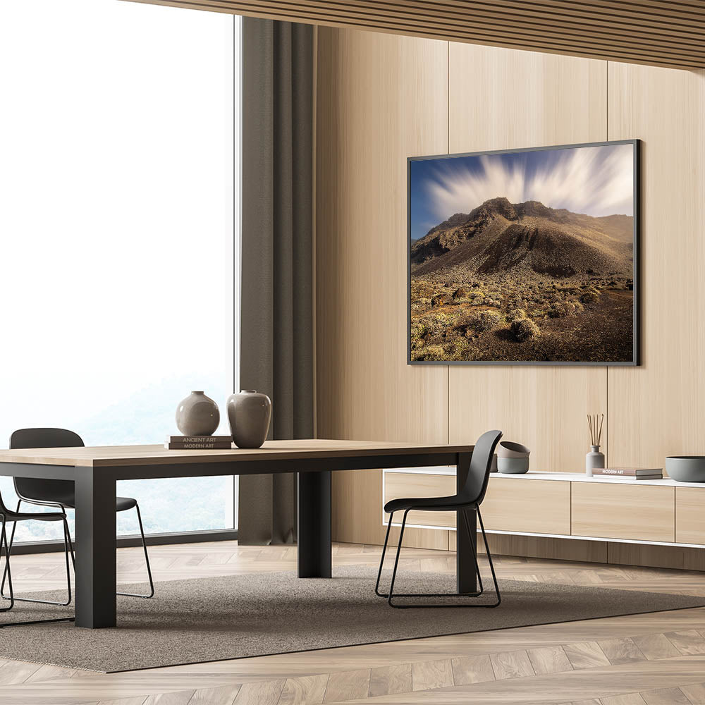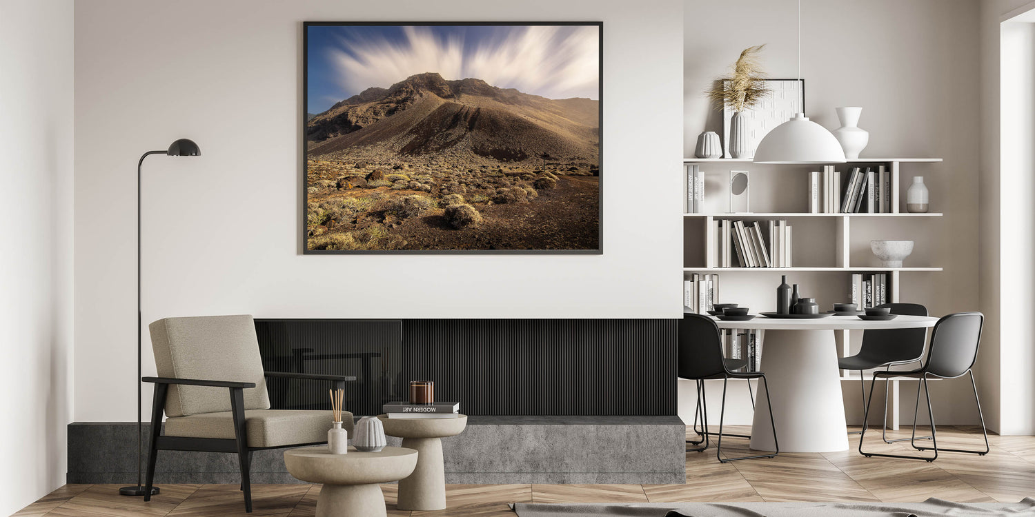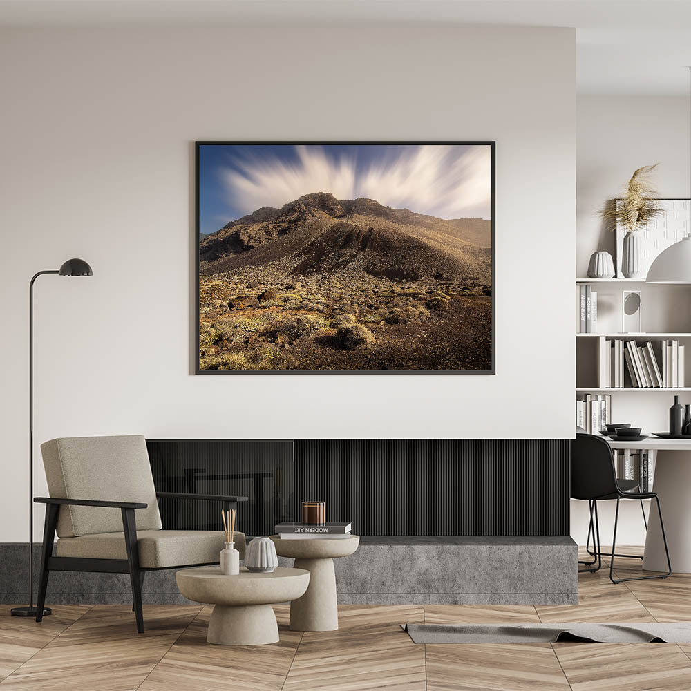 This beautiful piece of artwork is perfect for anyone looking to incorporate the rugged beauty of the Canary Islands' mountains into their interior decor. Choose from framed prints or canvas options to match your personal style.