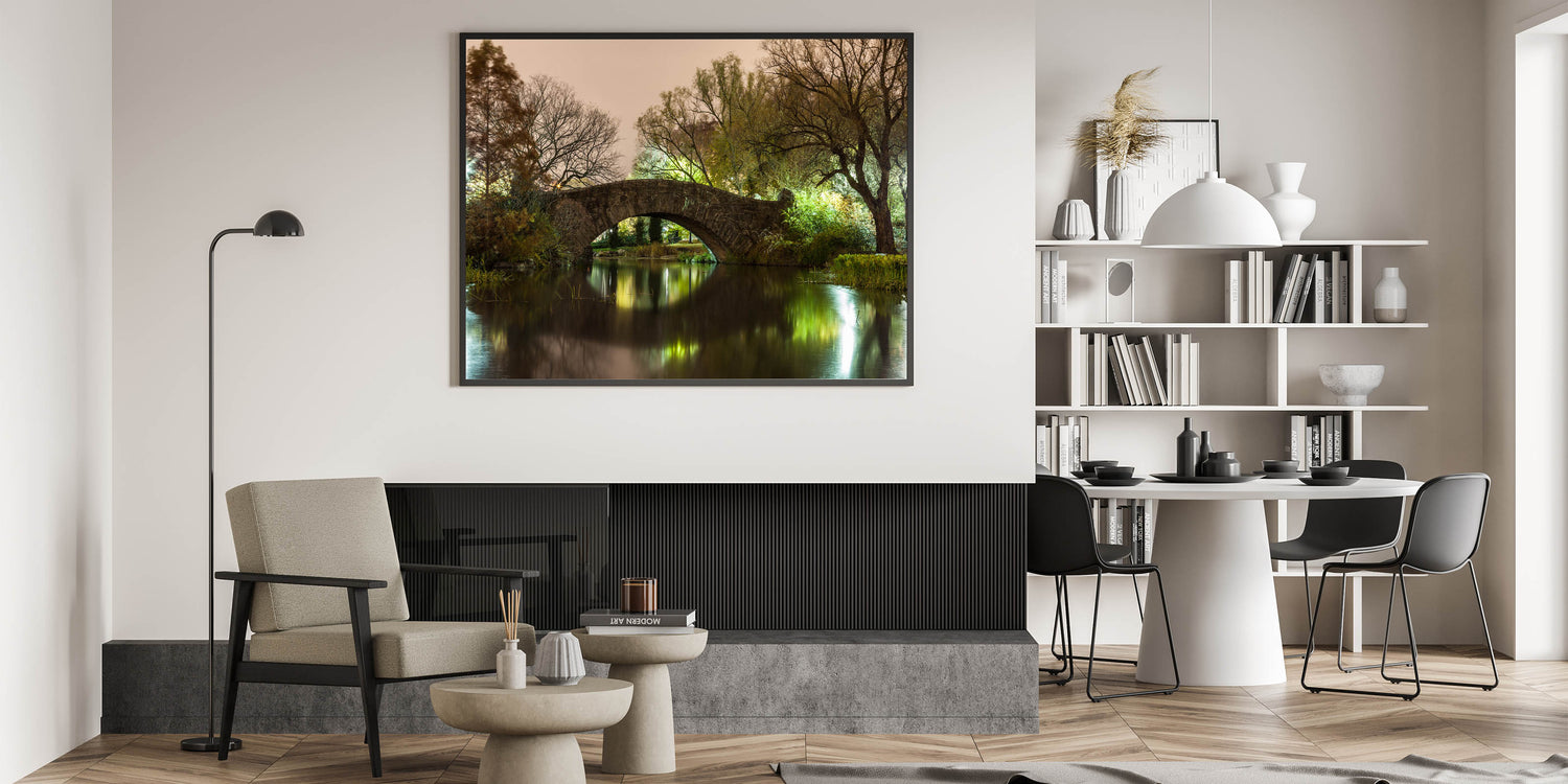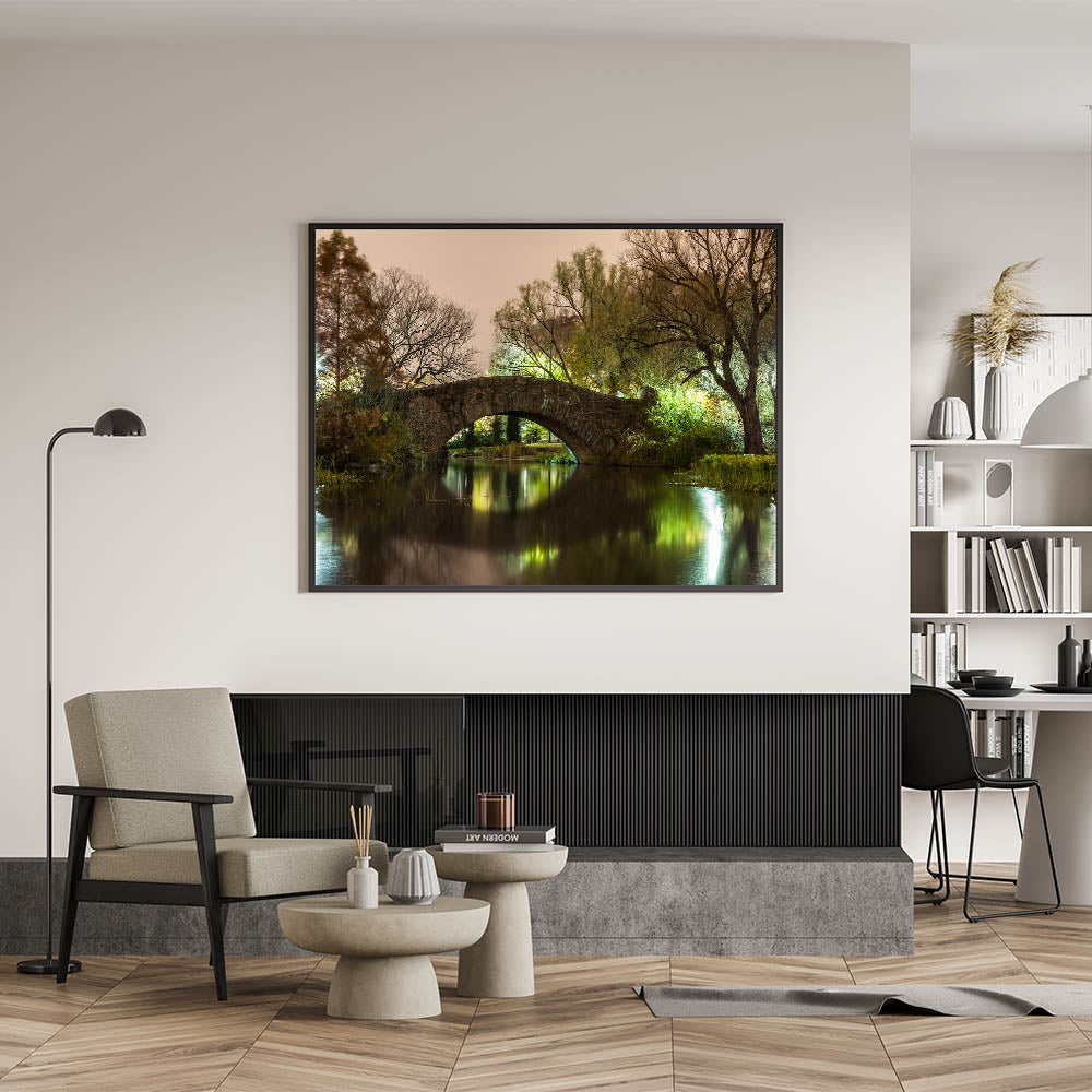 - Nighttime Beauty: High-quality Central Park canvas prints capturing the scenic beauty of Gapstow Bridge at night.