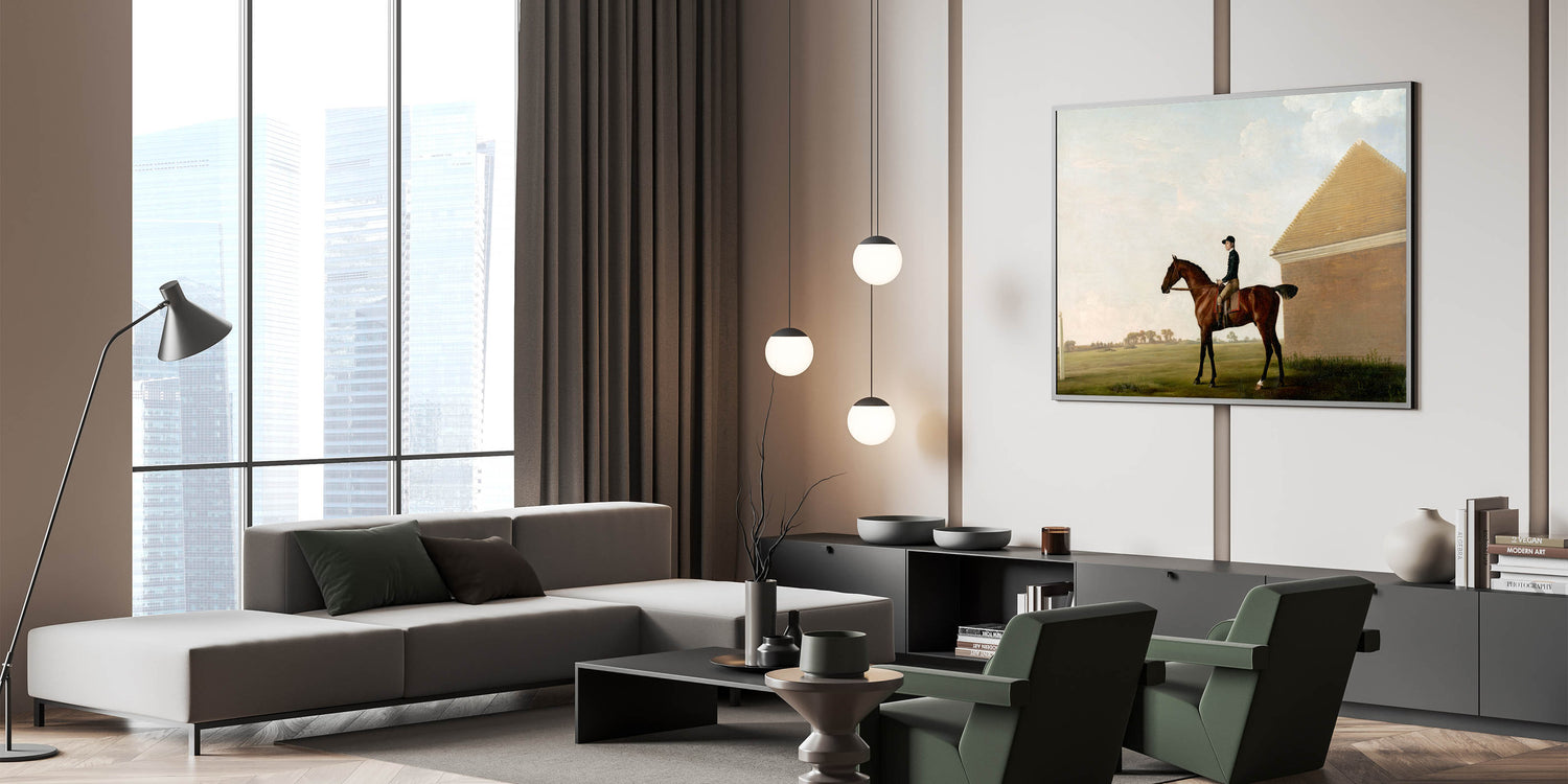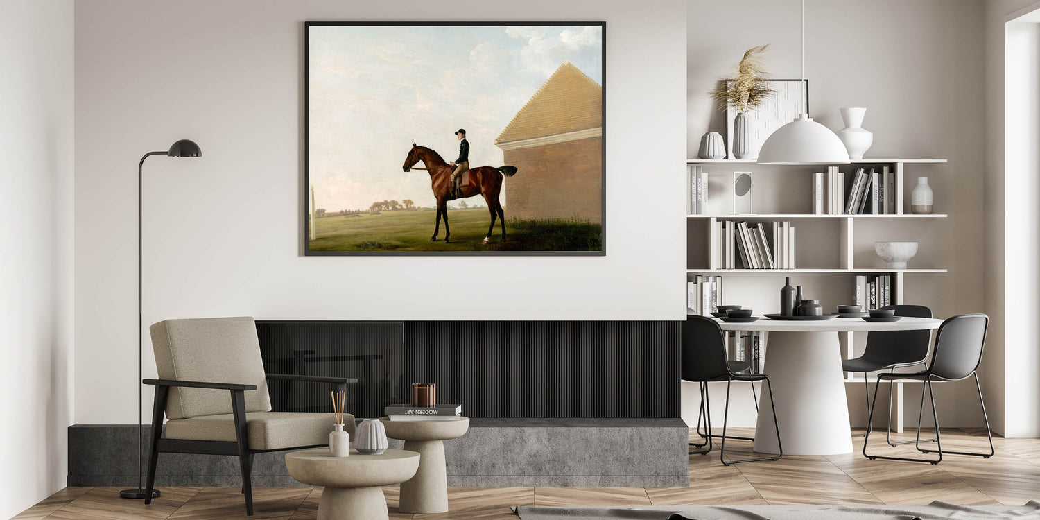 This exquisite Realism artwork, Turf, with Jockey up, at Newmarket by George Stubbs, perfectly captures the elegance and strength of equestrian life. Known for his precise depiction of horses, Stubbs brings this scene to life with a sense of calm and dignity, portraying both the horse and jockey against an expansive landscape. The earthy tones and clear, open sky give this piece a timeless appeal, making it an ideal choice for those who appreciate classical Realism and equestrian art.