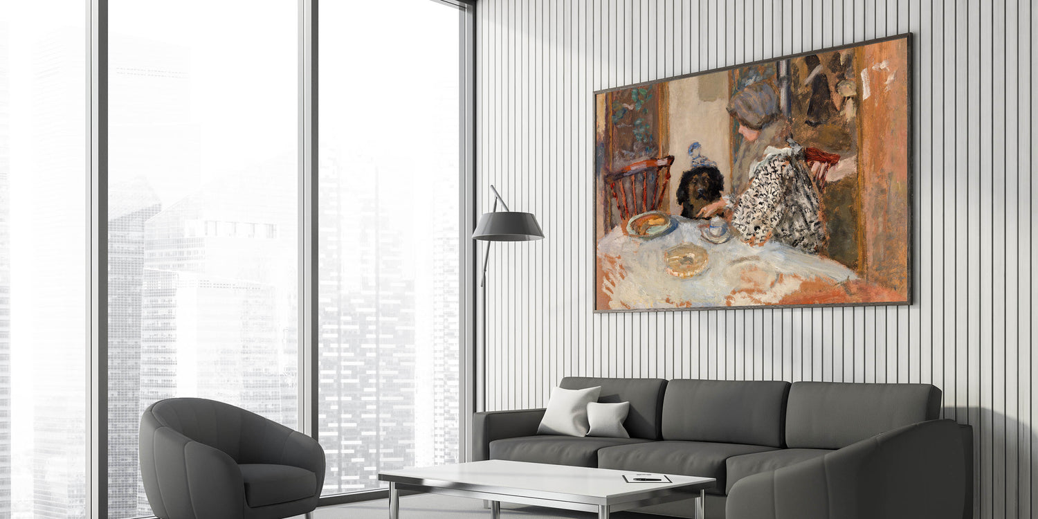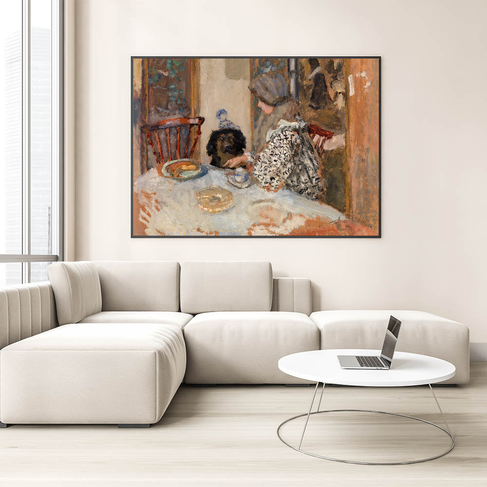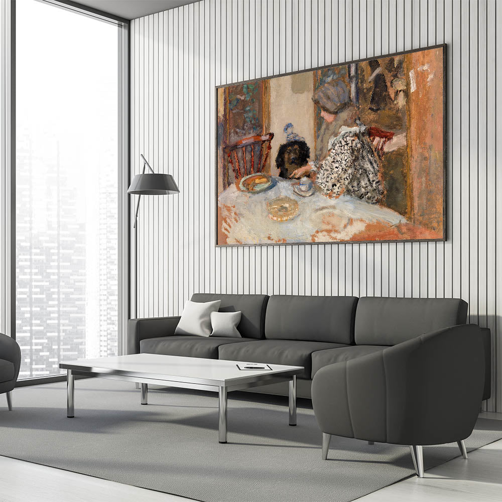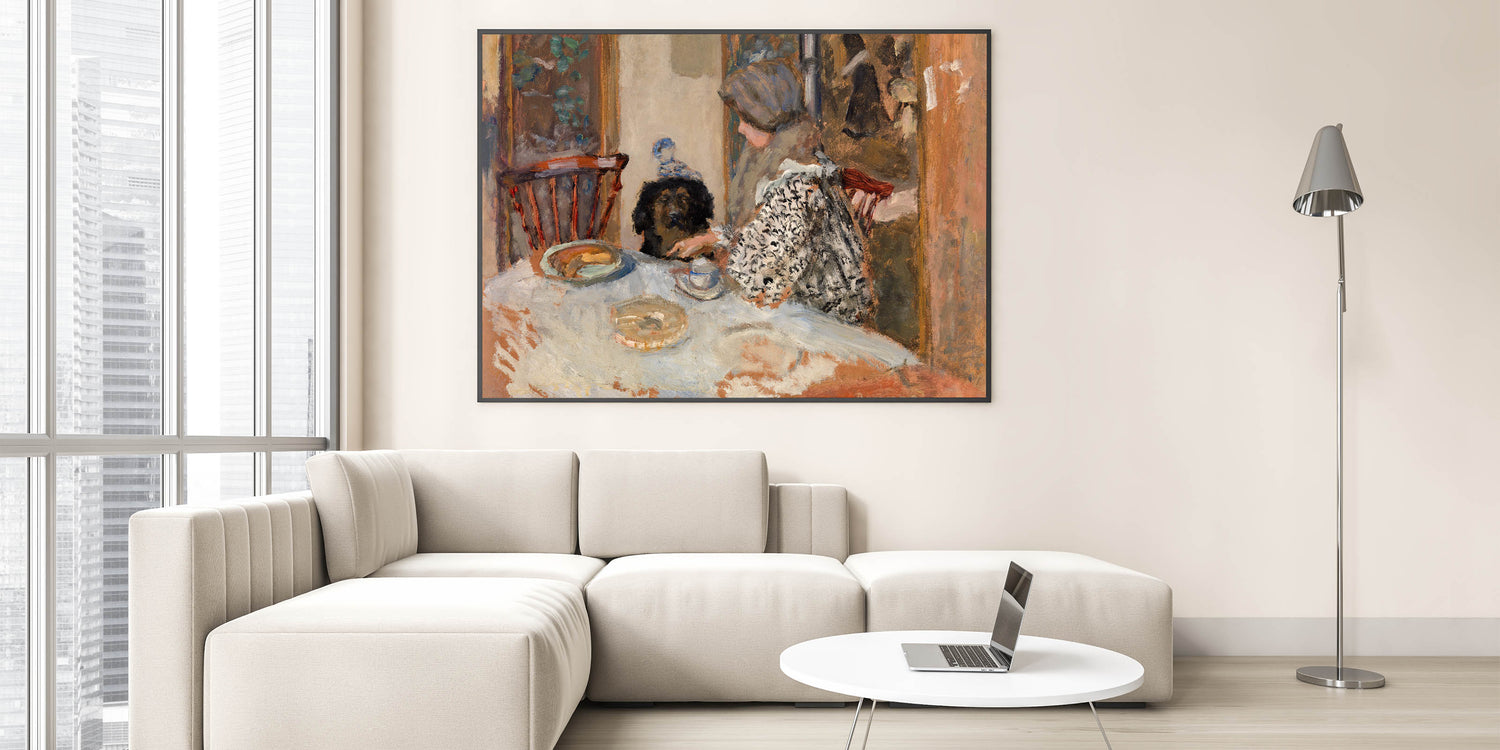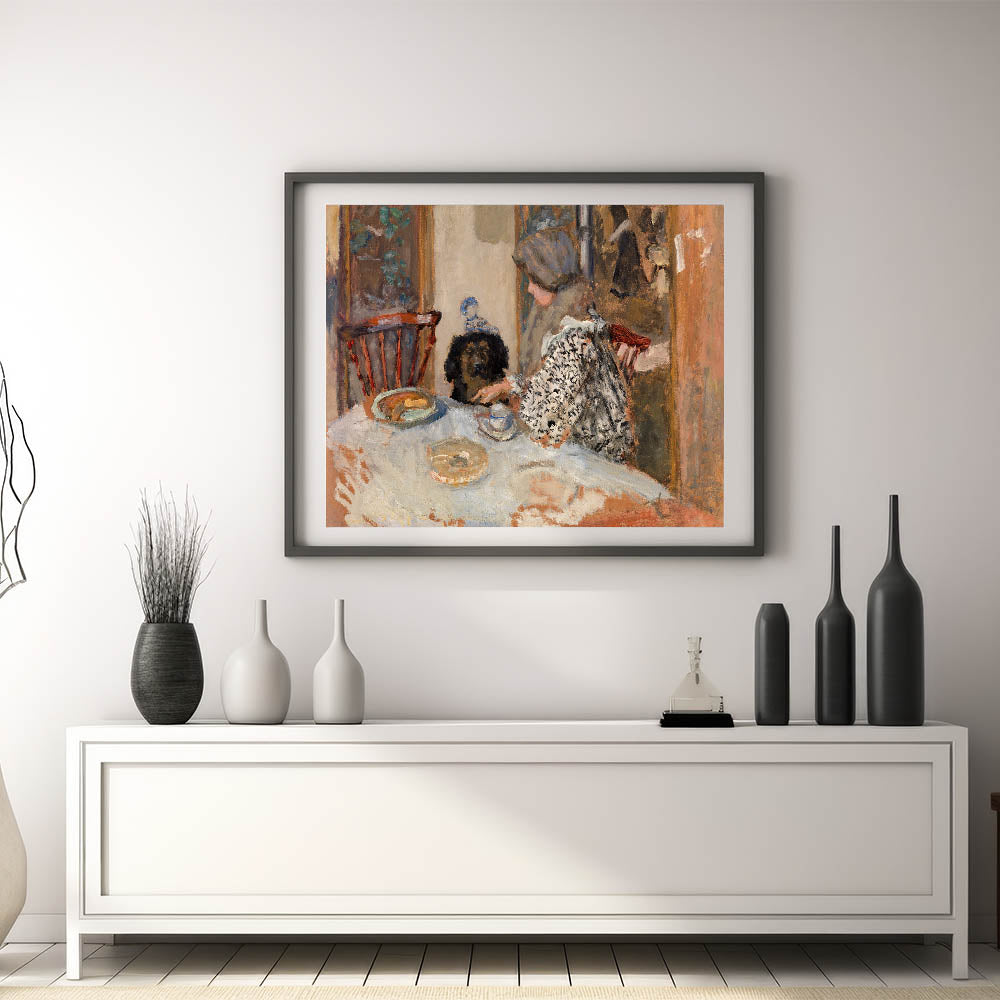 This enchanting Realism art print, Woman and Dog at Table by Pierre Bonnard, captures an intimate, everyday scene that brings warmth and life to any space. This artwork showcases the artist's skill in classical Realism, with detailed brushstrokes that bring the figures of a woman and her loyal dog to life. Each element, from the soft color palette to the natural light, adds depth and atmosphere, making it a timeless addition to your decor.