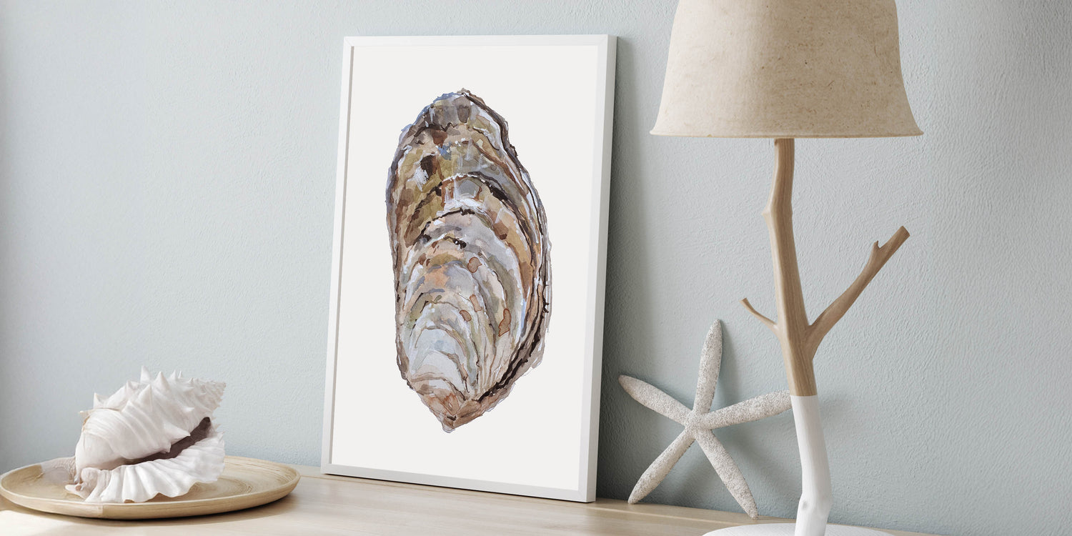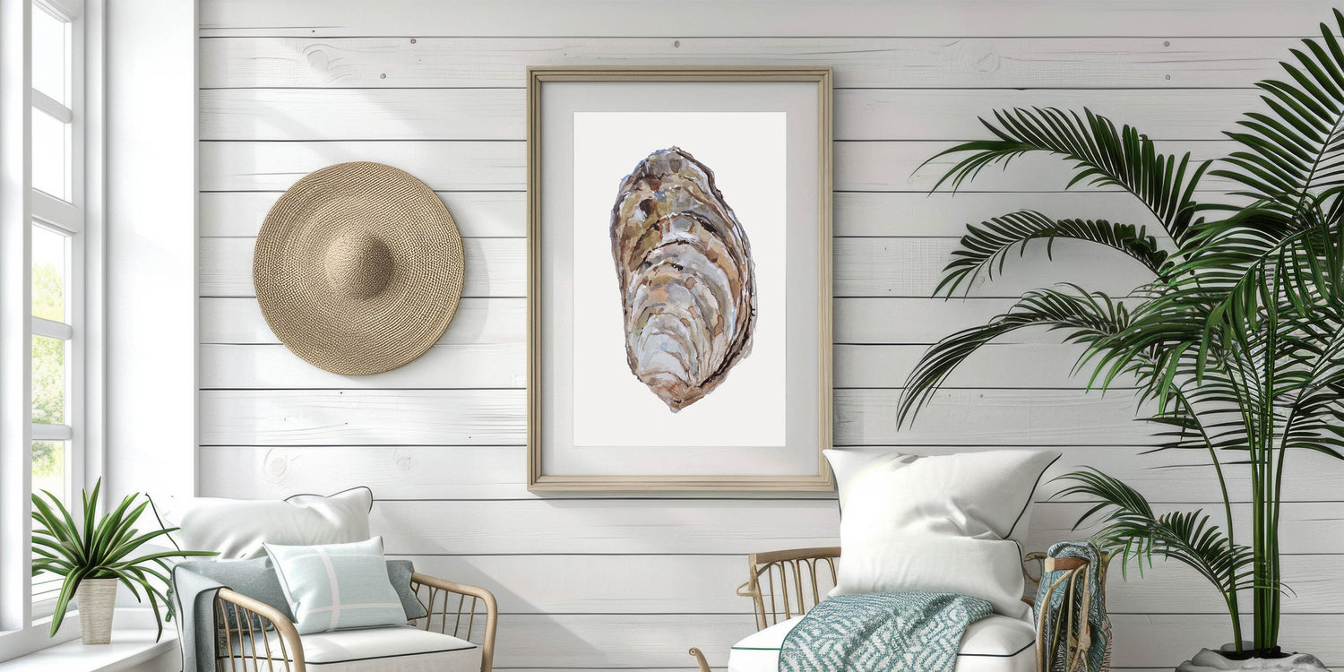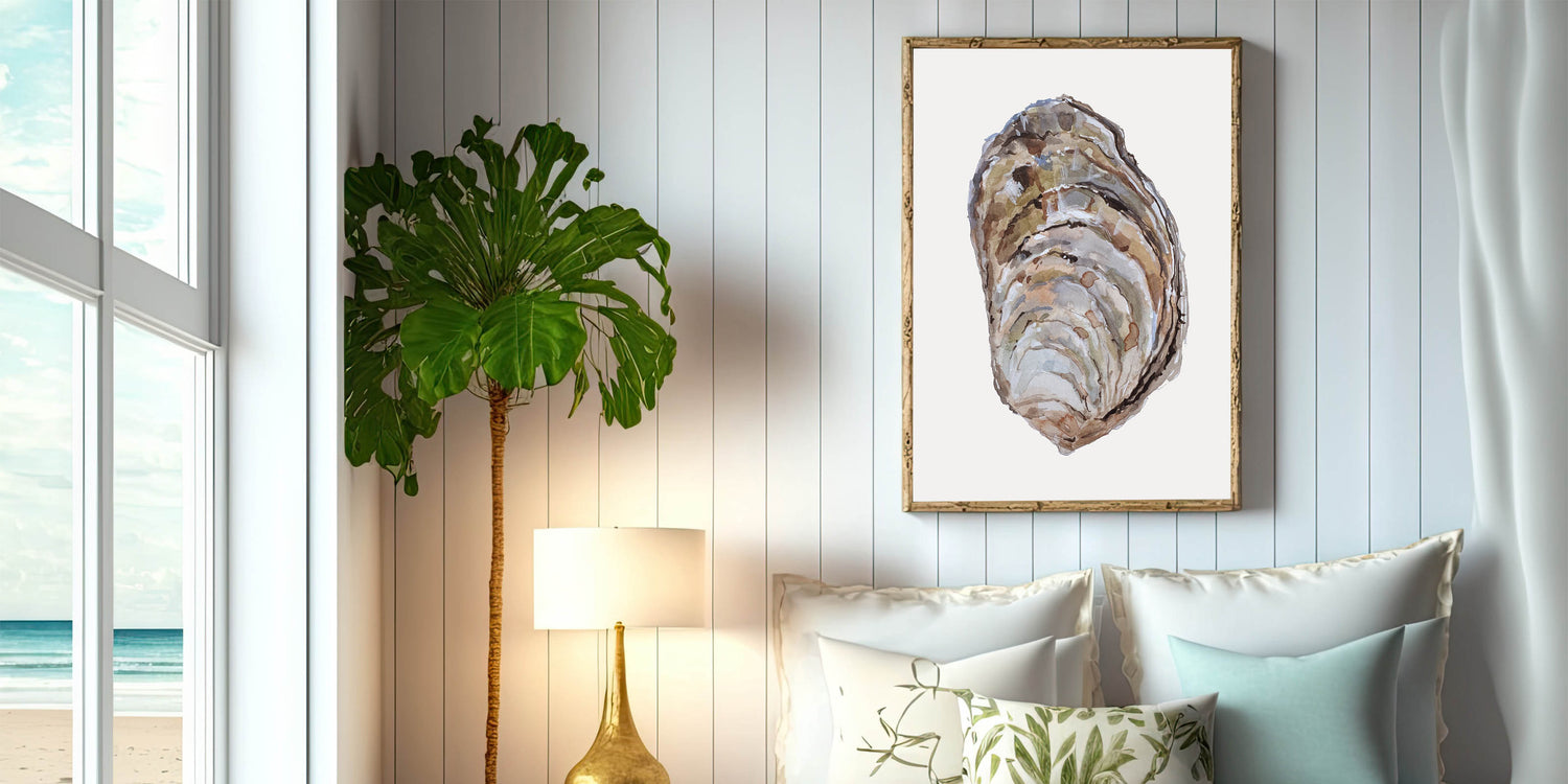 Coastal Wall Art - Nautical Oyster Shell Design for Seaside Living Decor