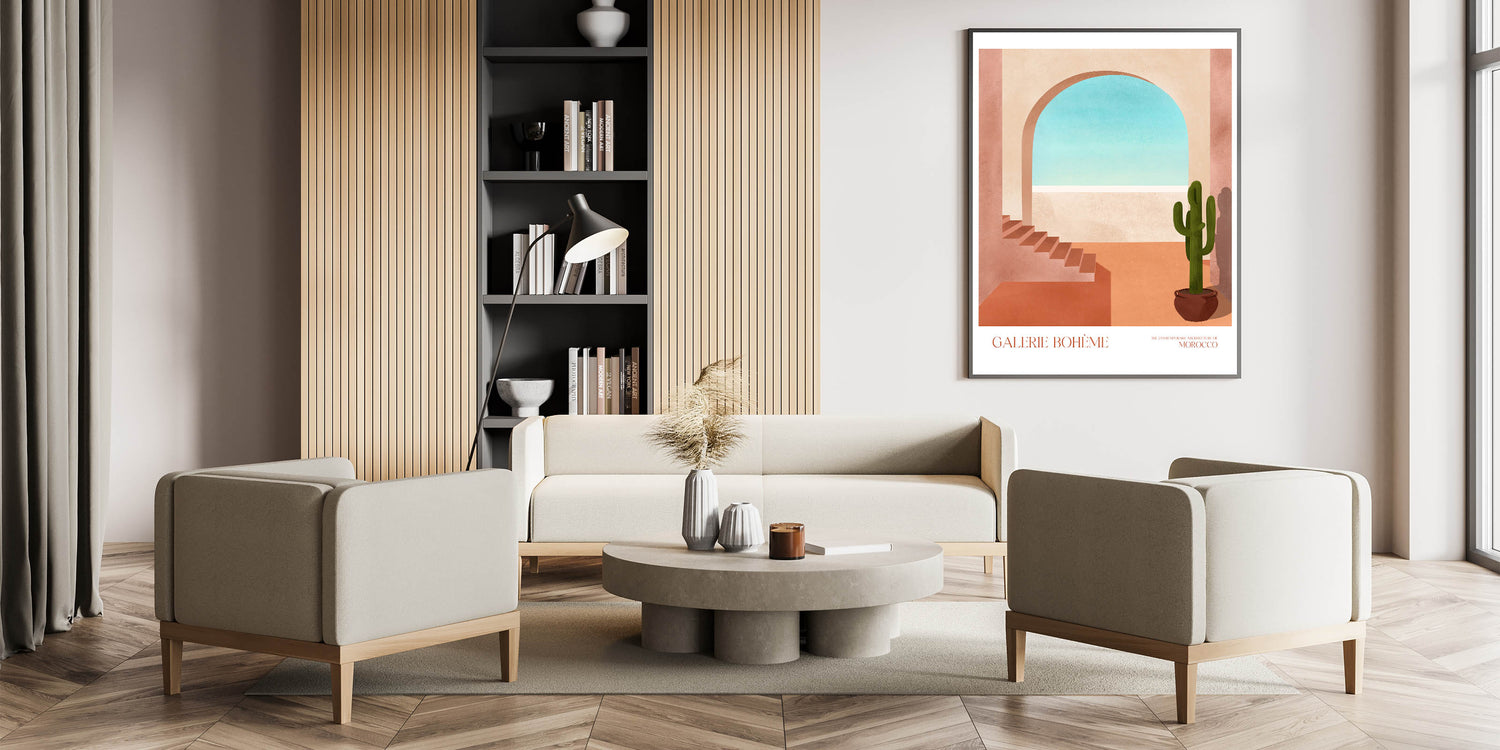- Contemporary art inspired by Moroccan architecture, ideal for adding a touch of sophistication to any room.