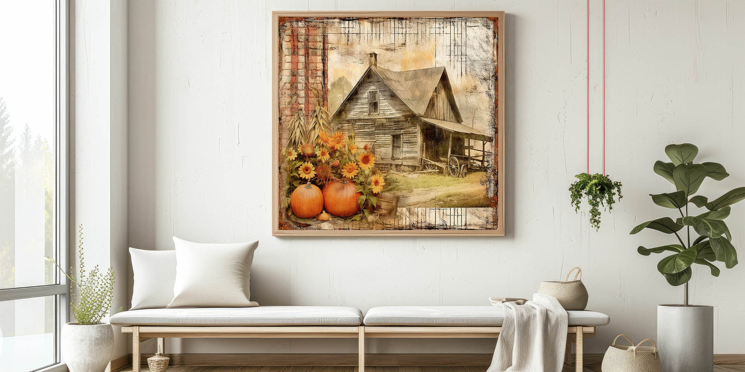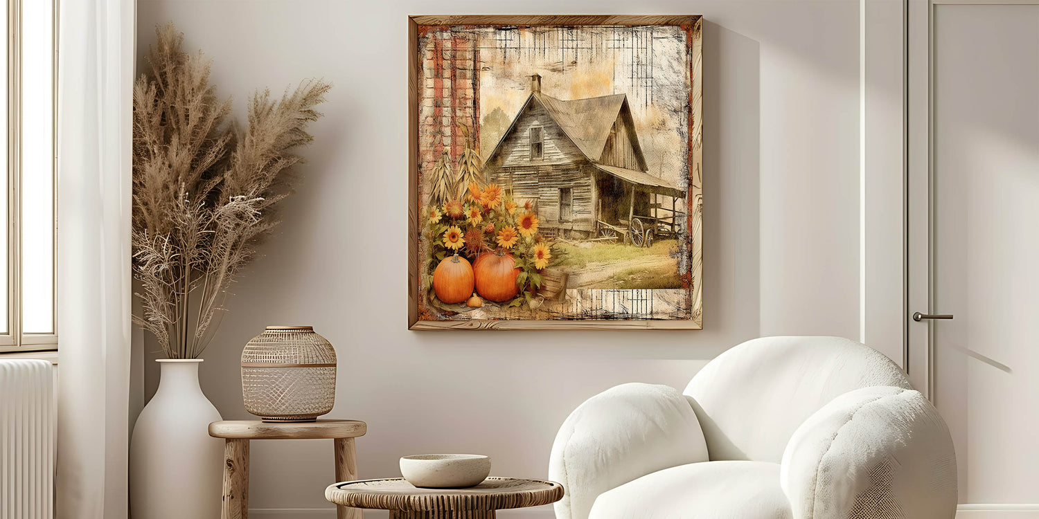 This farmhouse wall art is the perfect addition to your fall decor or year-round country living style. Whether you’re decorating for a special season or looking to create a welcoming space, this artwork brings the essence of rural charm into your home.