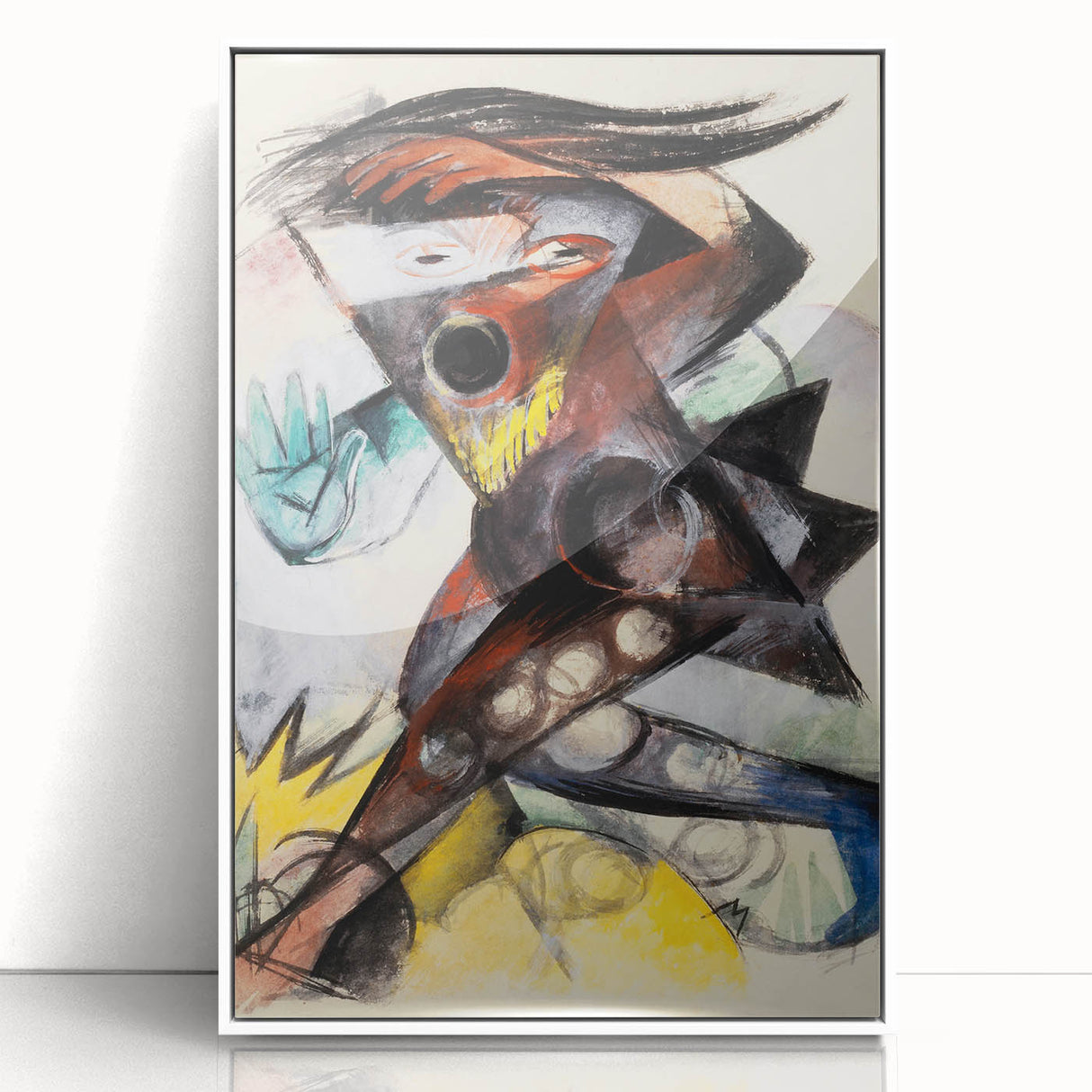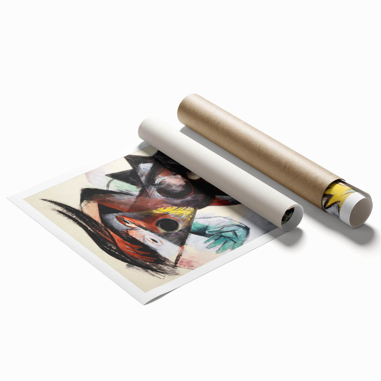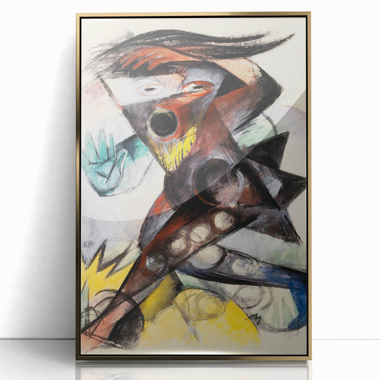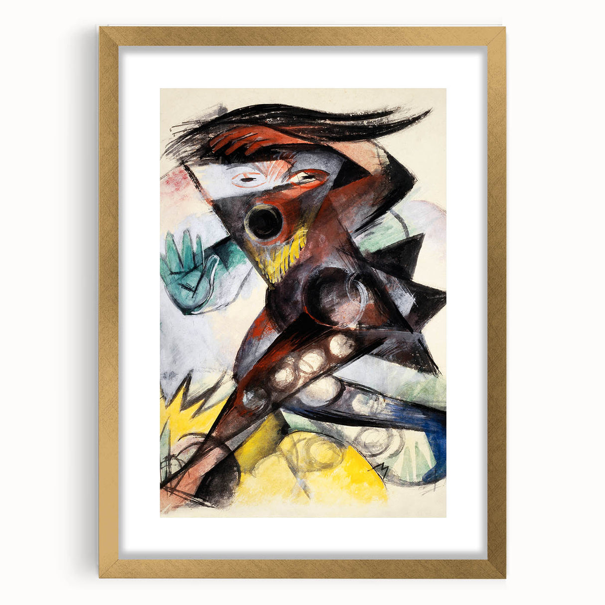 Discover the bold expression of Franz Marc’s "Caliban – Figurine for The Tempest," an abstract masterpiece inspired by Shakespeare's iconic play. This painting captures the chaotic and primal energy of Caliban, blending intense yellows, deep reds, and earthy browns with geometric and fluid shapes. The dramatic contrasts and dynamic brushstrokes evoke the raw emotion and complexity of the character, making this artwork a captivating addition to any space.