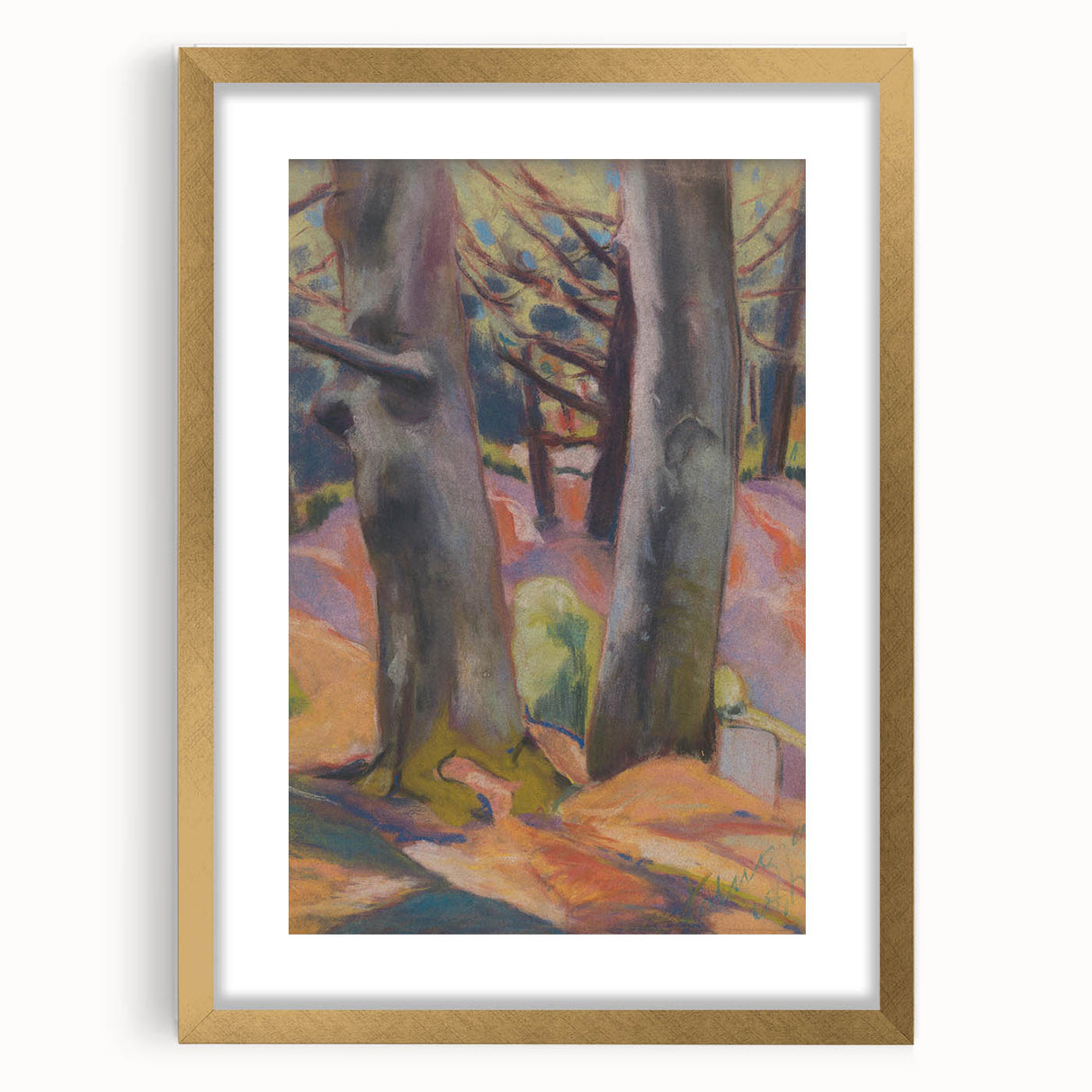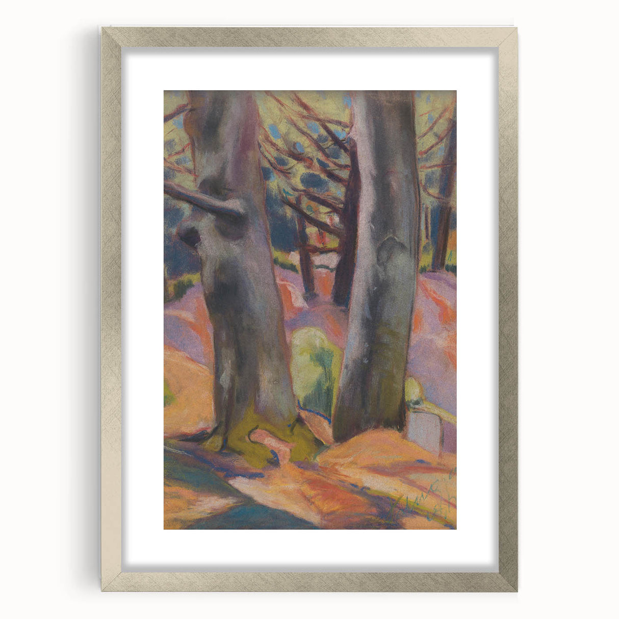 Bring the tranquility of nature into your space with this serene Expressionist tree study. This artwork features a harmonious blend of greens, browns, and peach tones, creating a dreamlike atmosphere. The interplay of soft hues and textured brushstrokes captures the essence of a peaceful forest, making it an ideal piece for creating a calming environment.