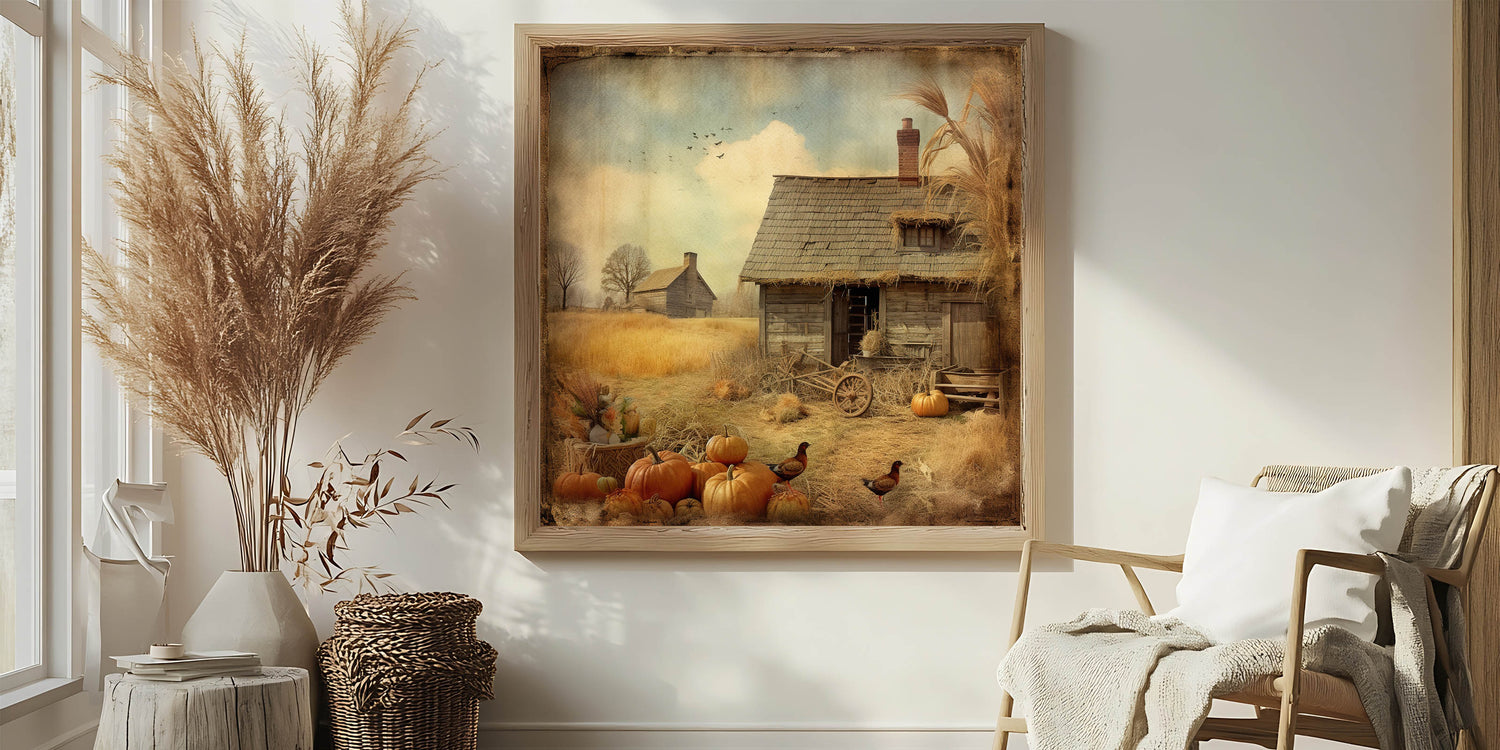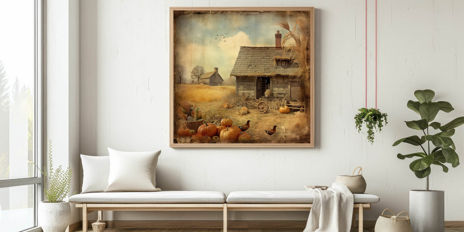 Perfect for lovers of vintage farmhouse prints, this artwork adds a touch of rustic elegance and country charm to any space. Whether you’re decorating for the fall season or looking to create a cozy atmosphere year-round, this piece brings the essence of farmhouse living to life.