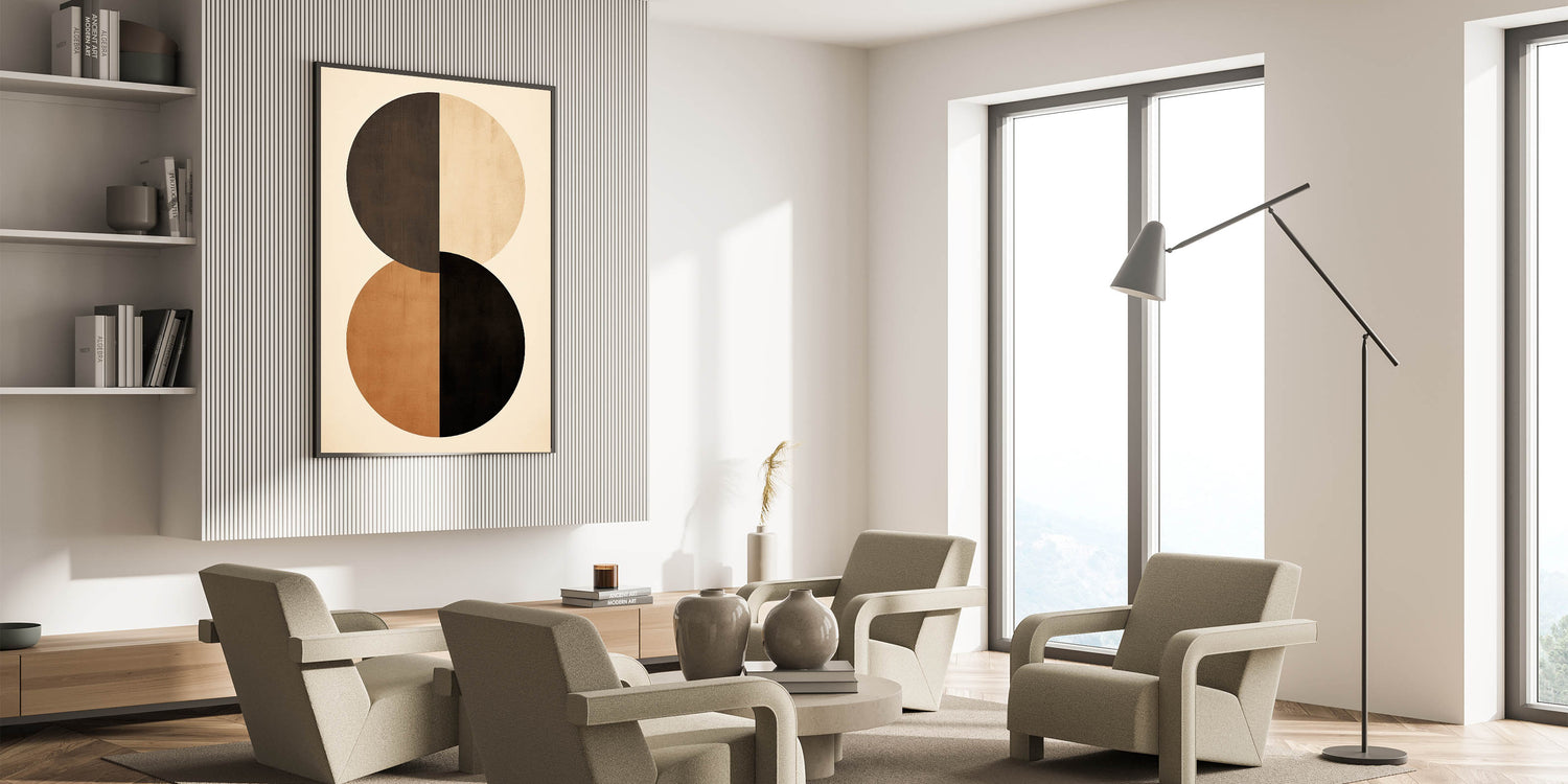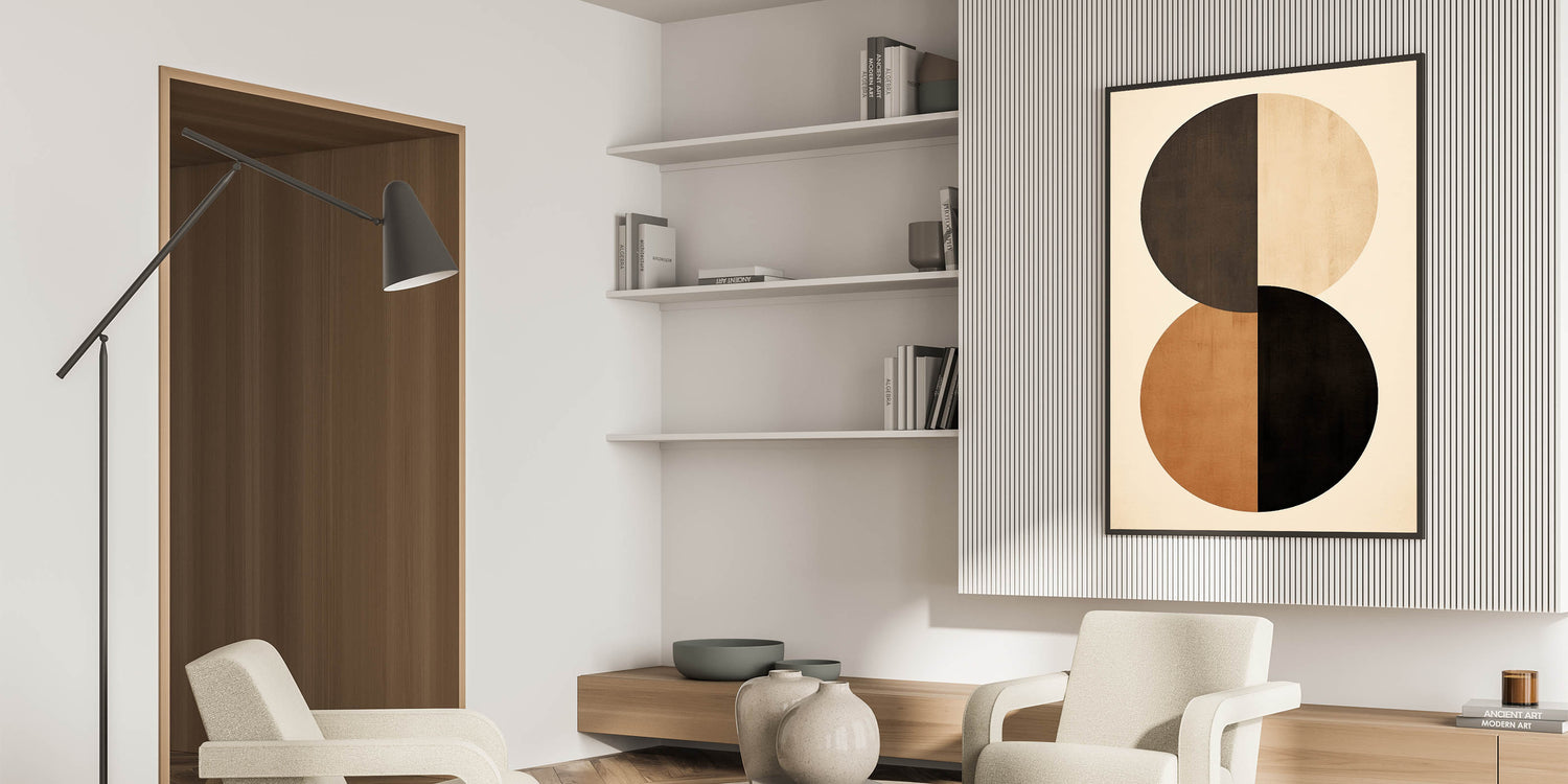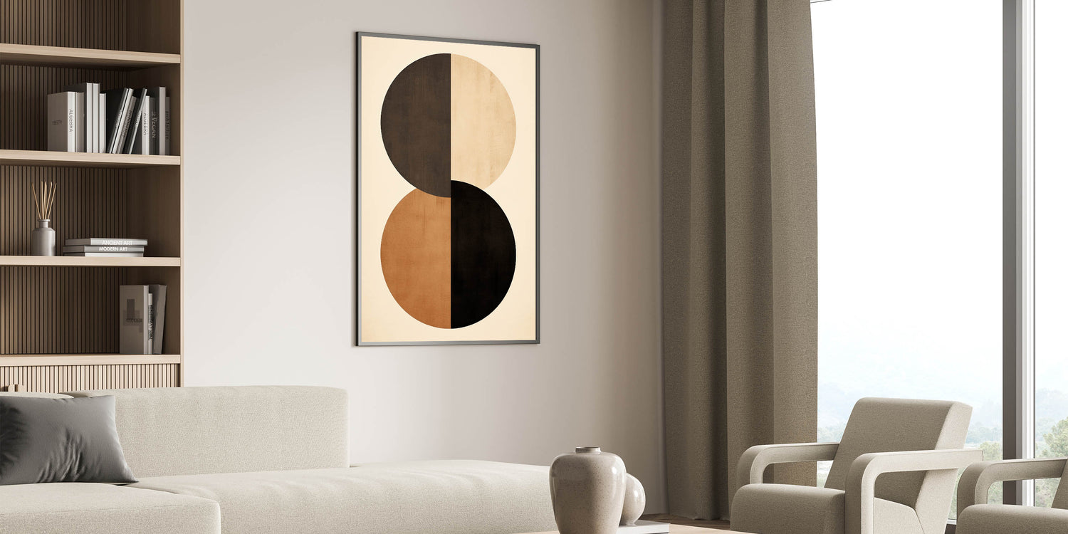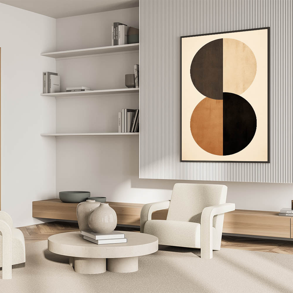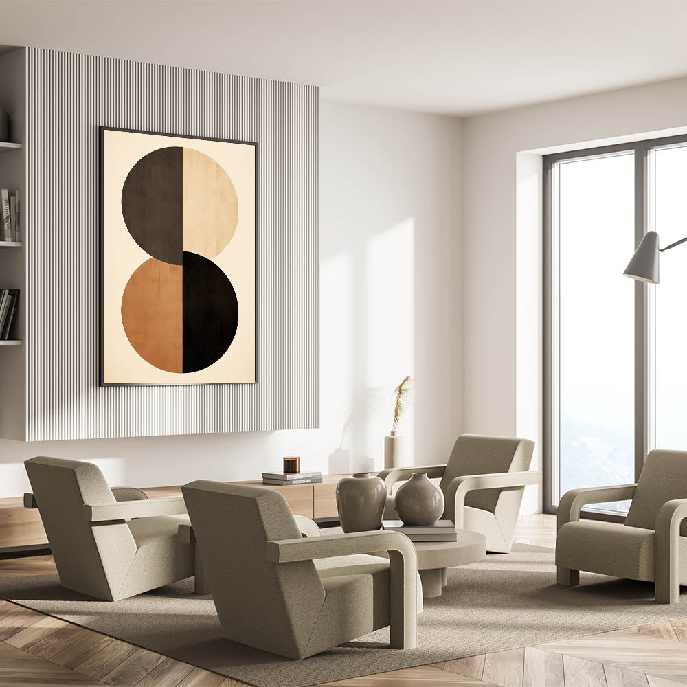 Geometric Minimalist Wall Art - Dual Circle Design in Earth Tones