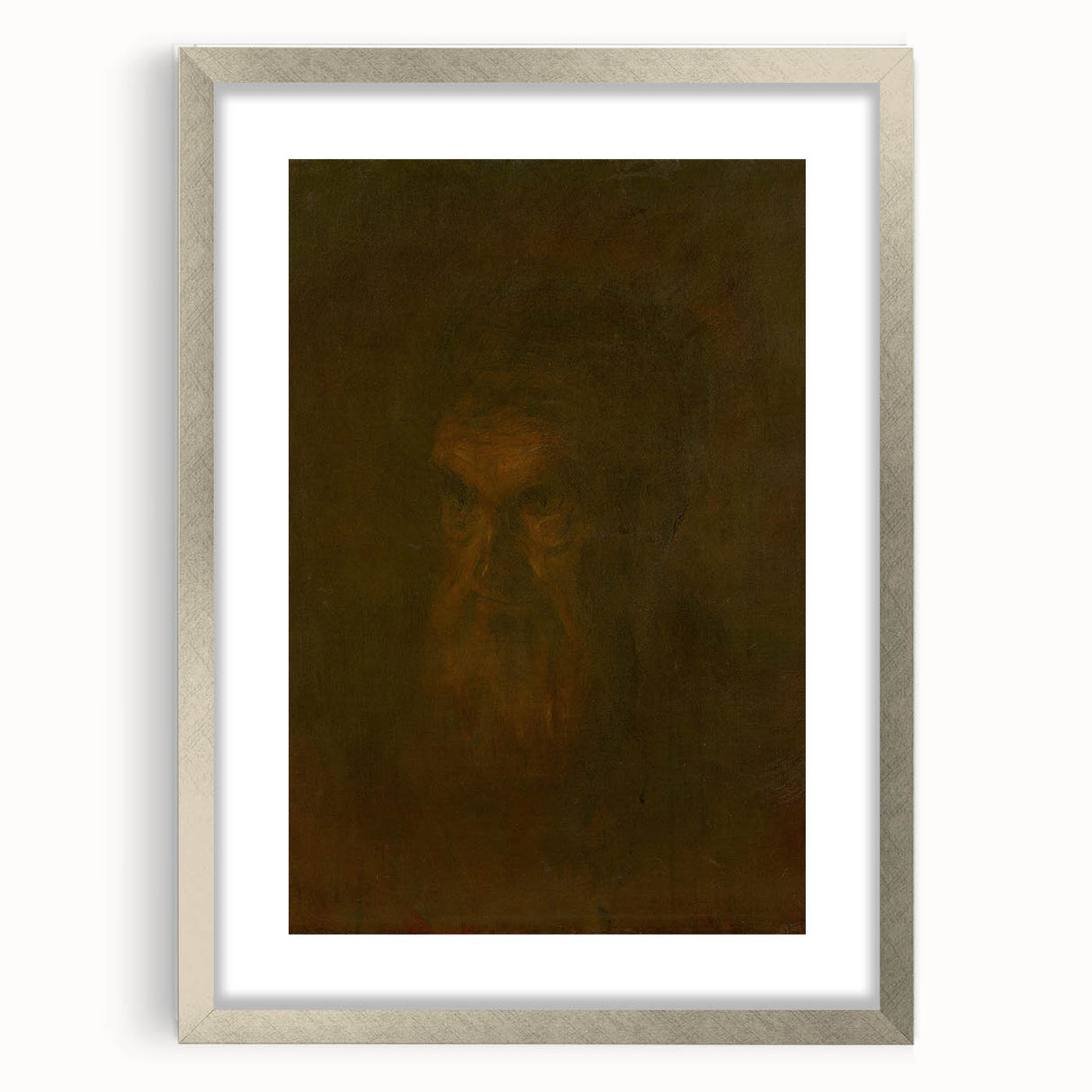 Introduce a sense of mystery and depth to your decor with "Head Study of an Old Man" by Ladislav Mednyánszky. This evocative Realism art print captures the faint outline of an elderly man’s face emerging from shadows, giving the piece a hauntingly introspective quality. Mednyánszky’s masterful use of dark tones and subtle highlights brings a contemplative, almost ethereal mood to the artwork, making it perfect for anyone who appreciates portraiture that delves into the complexities of the human spirit.
