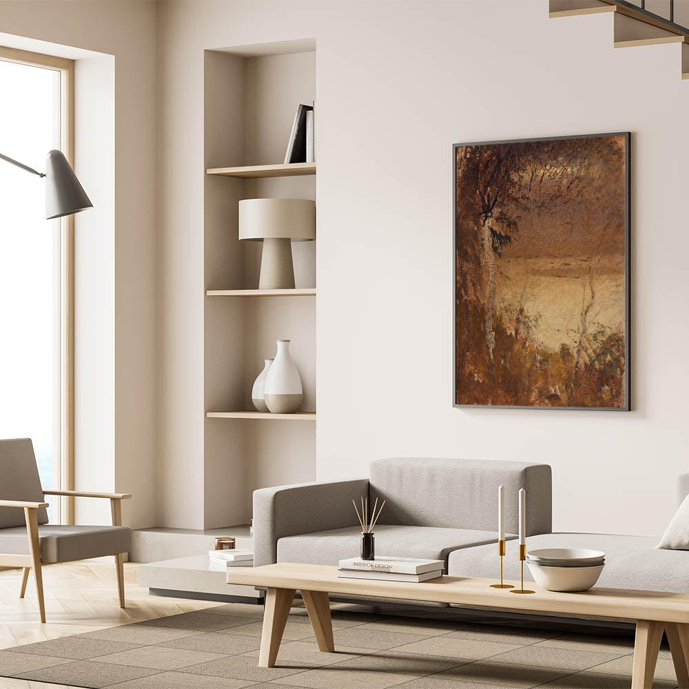 This piece brings the quiet beauty of fall into your home, offering a glimpse of nature’s warm tones and meditative mood. Ideal for art lovers who enjoy landscapes that reflect the changing seasons.