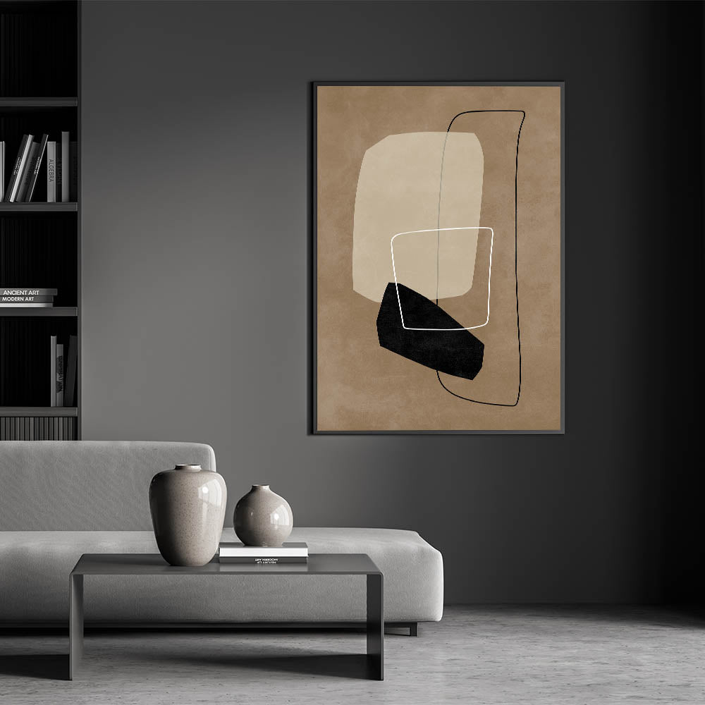 This Mid Century Modern Art piece offers a striking combination of geometric shapes and abstract design. The interplay of overlapping forms in neutral tones creates a visually dynamic composition that is both sophisticated and understated. The minimalist lines and retro-inspired elements make this piece a perfect fit for anyone seeking to incorporate vintage modern style into their home or office decor.
