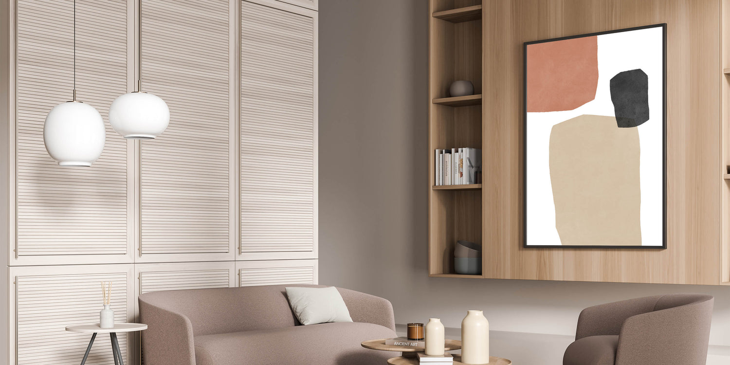 Elevate your home decor with this striking Mid Century Modern wall art, featuring retro-inspired abstract geometric patterns. The combination of soft terracotta, charcoal, and beige tones brings a timeless yet minimalist aesthetic, making it a perfect piece for any modern or vintage-inspired space. This artwork blends simplicity with an artistic flair, ideal for creating a calming, sophisticated atmosphere in your living room, bedroom, or office.