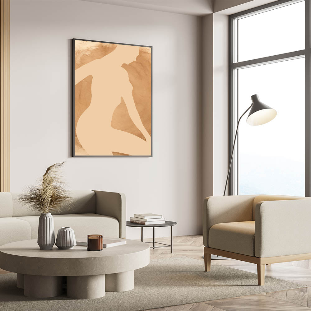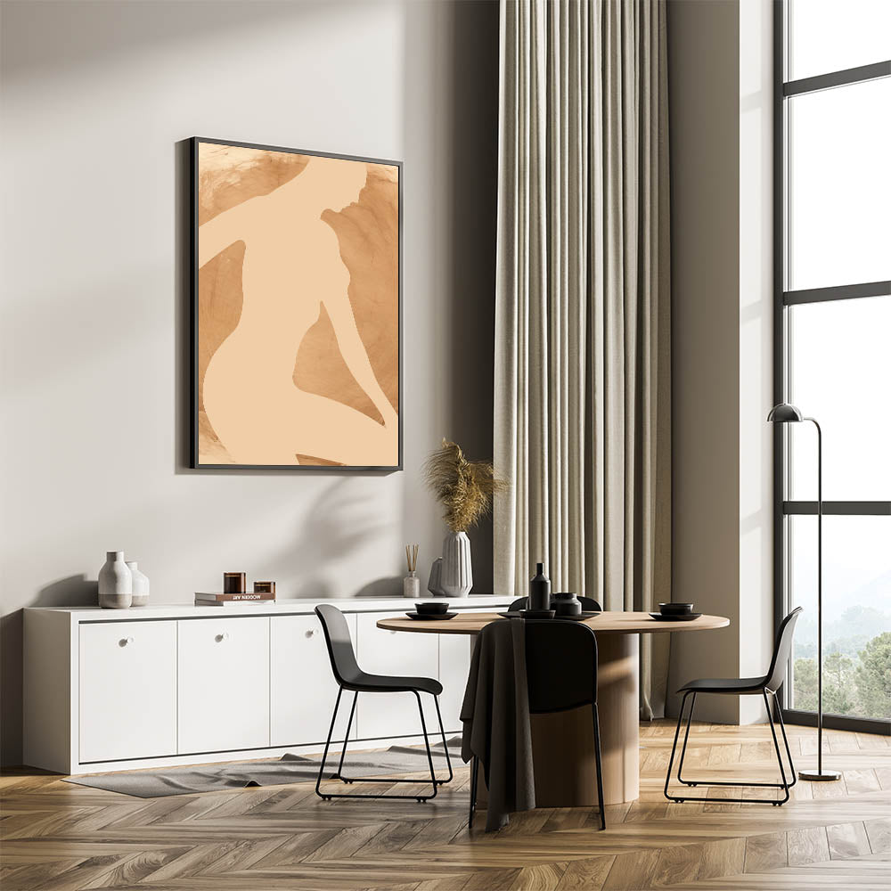 Enhance your space with this elegant minimalist wall art featuring a sleek silhouette in soft, earthy tones. This abstract piece exudes simplicity and sophistication, perfect for anyone looking to add a touch of minimalist aesthetic to their home. The clean lines and subtle hues make it an ideal addition to modern or contemporary interiors, creating a serene and refined atmosphere in any room.