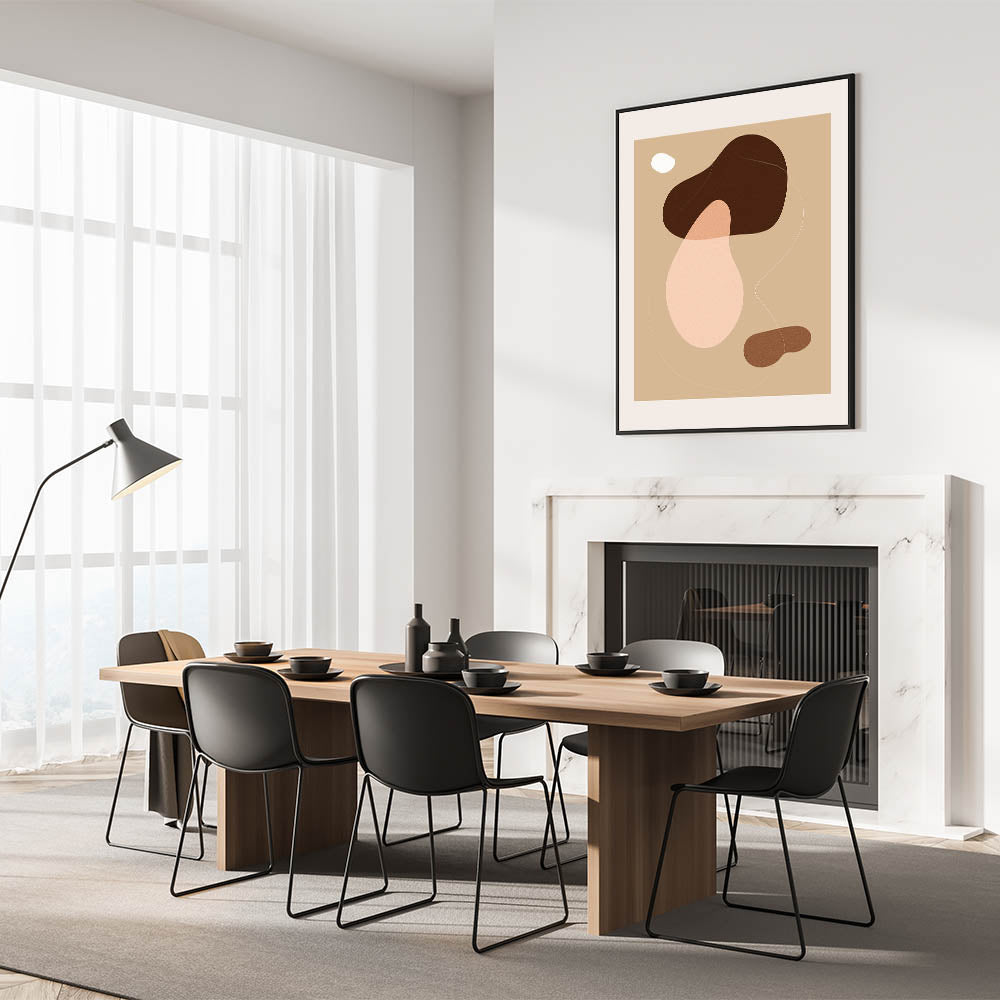 Embrace the beauty of minimalism with this abstract Bohemian wall art. Featuring a soothing blend of beige, brown, and peach, this canvas captures the essence of modern boho decor. The fluid, organic shapes and soft color palette create a tranquil and inviting atmosphere, making it an ideal piece for living rooms, bedrooms, or offices. The natural earthy tones make this minimalist design perfect for complementing a variety of interior styles.