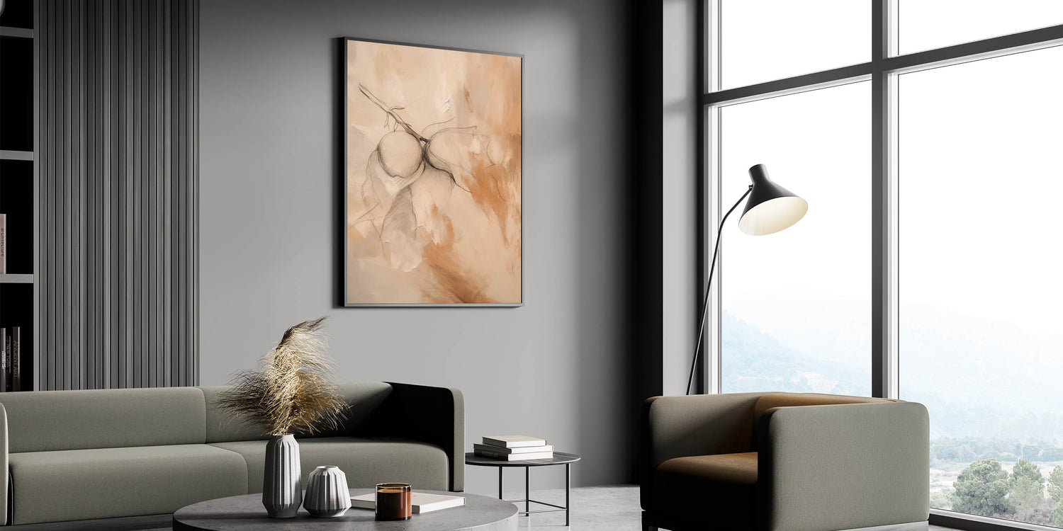 Add a touch of nature to your home with this elegant minimalist botanical wall art. Featuring a delicate line drawing of fruit branches against a warm, abstract background, this piece seamlessly blends natural elements with modern minimalist design. The soft earthy tones and refined composition make it a versatile addition to any contemporary space.
