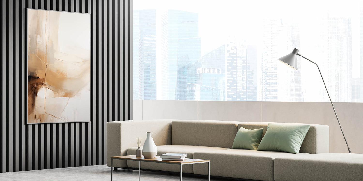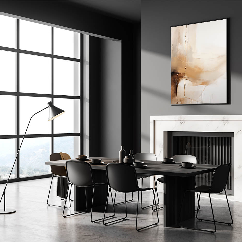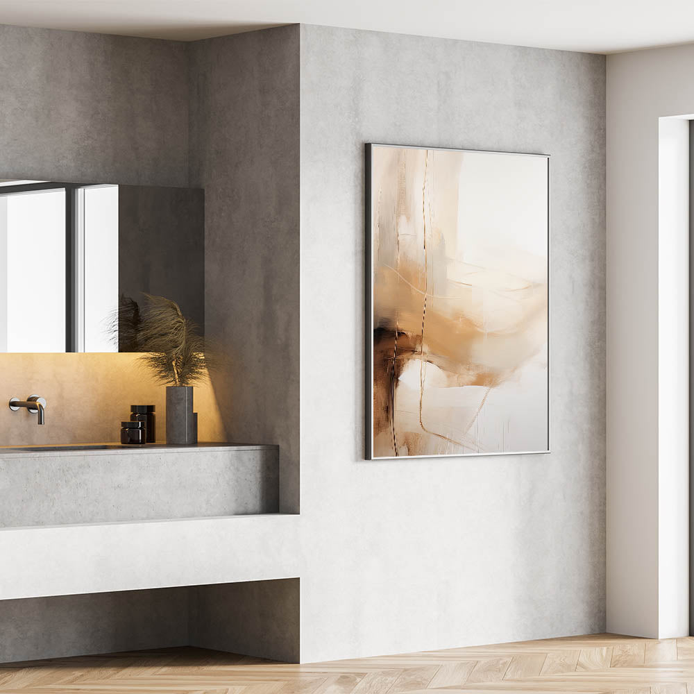 Add a warm, elegant touch to your home decor with this abstract minimalist wall art, featuring soft beige and white tones. The fluid, abstract design creates a sense of movement and lightness, making it a perfect fit for contemporary interiors. With its neutral palette and sleek aesthetic, this piece easily complements minimalist home decor, providing a stylish focal point for living rooms, bedrooms, or office spaces. The delicate balance of earthy tones and clean lines embodies a minimalist aesthetic that brings warmth and sophistication to any room.