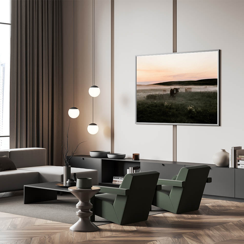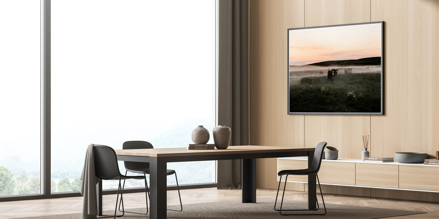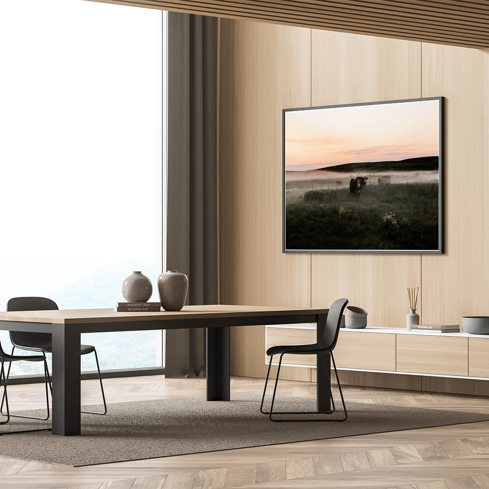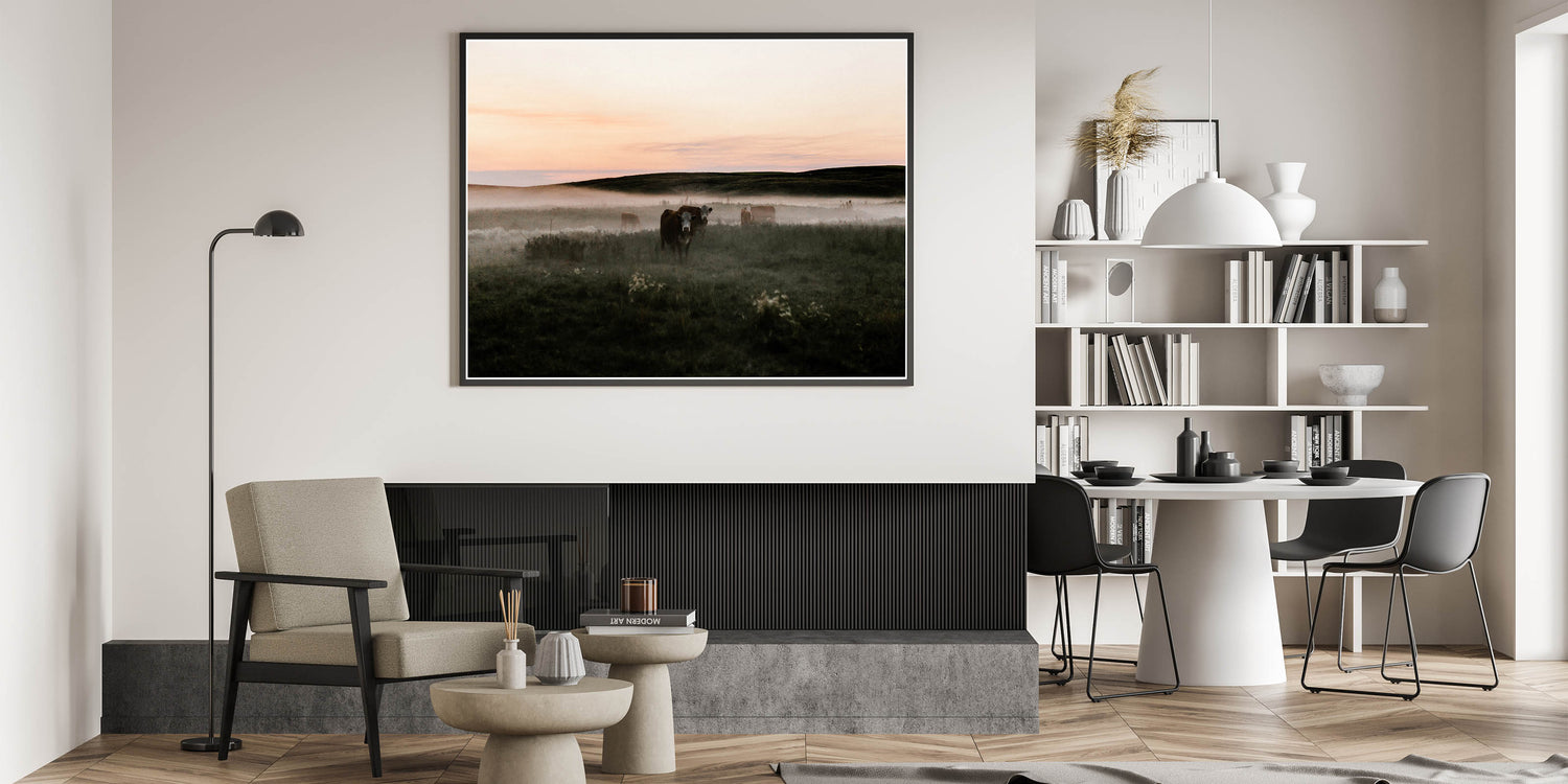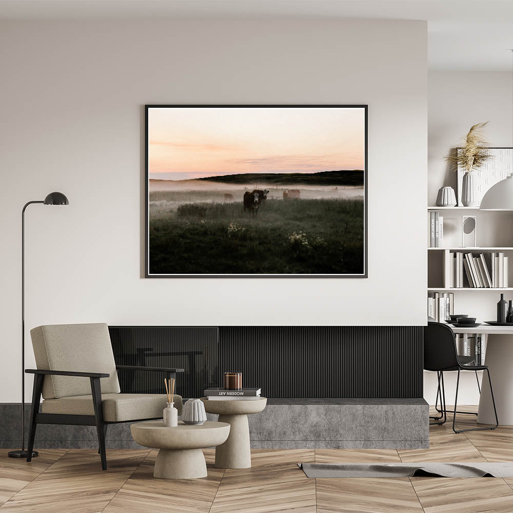 Bring the peaceful charm of the countryside into your home with this beautiful misty cattle wall art. It's perfect for creating a cozy, rustic vibe in any space.