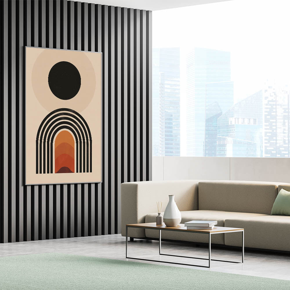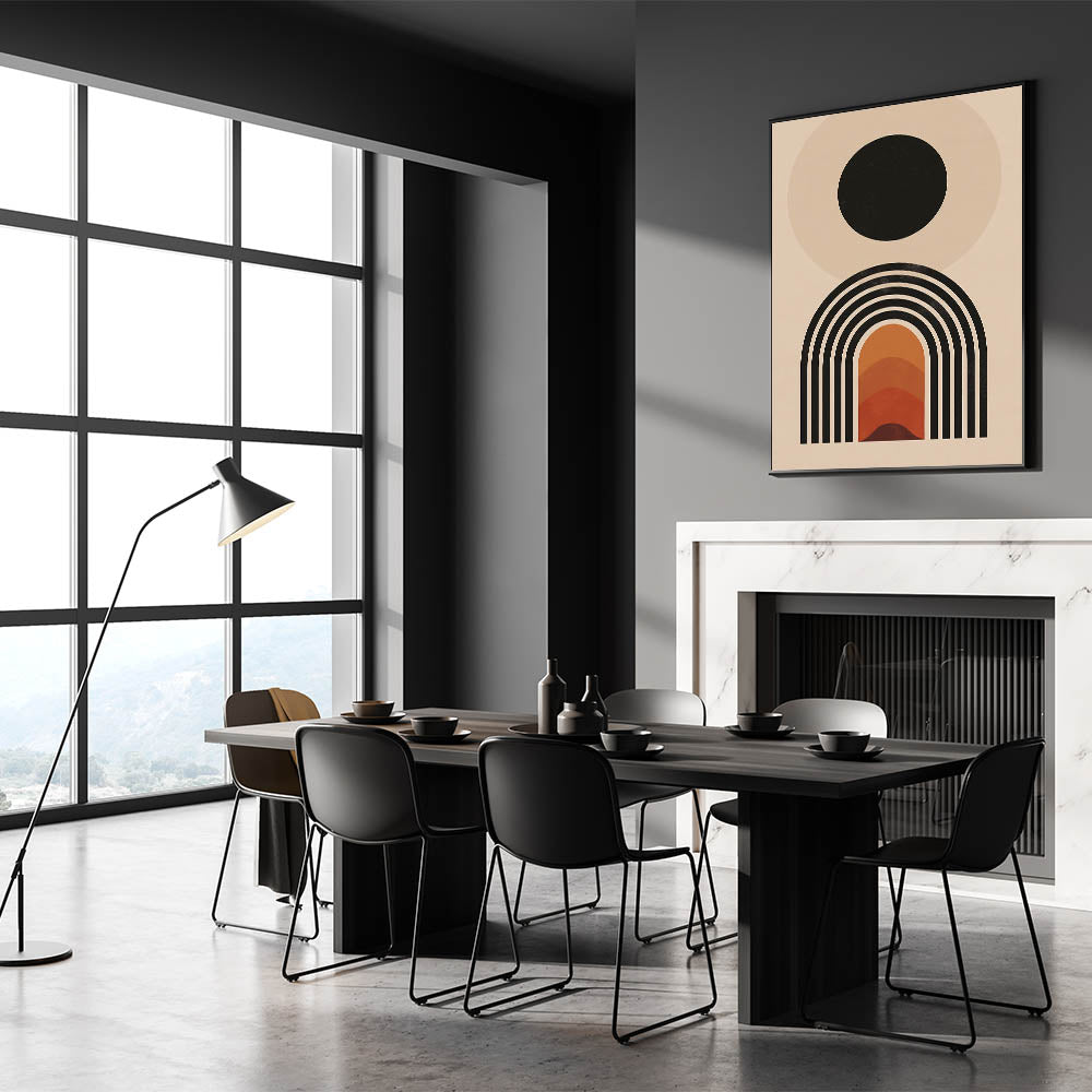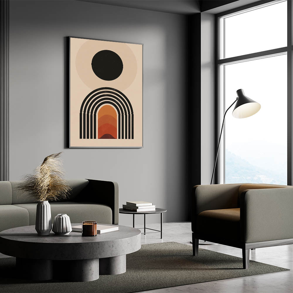 This striking piece of Modern Bohemian wall art brings together bold geometric shapes and warm earthy tones, perfect for any vibrant and eclectic space. The layered arches and bold circular patterns offer a balanced blend of modern and boho chic aesthetics, making this artwork a stunning focal point for your home. Whether in your living room, bedroom, or office, this geometric boho decor canvas adds a touch of sophistication and personality to any interior.
