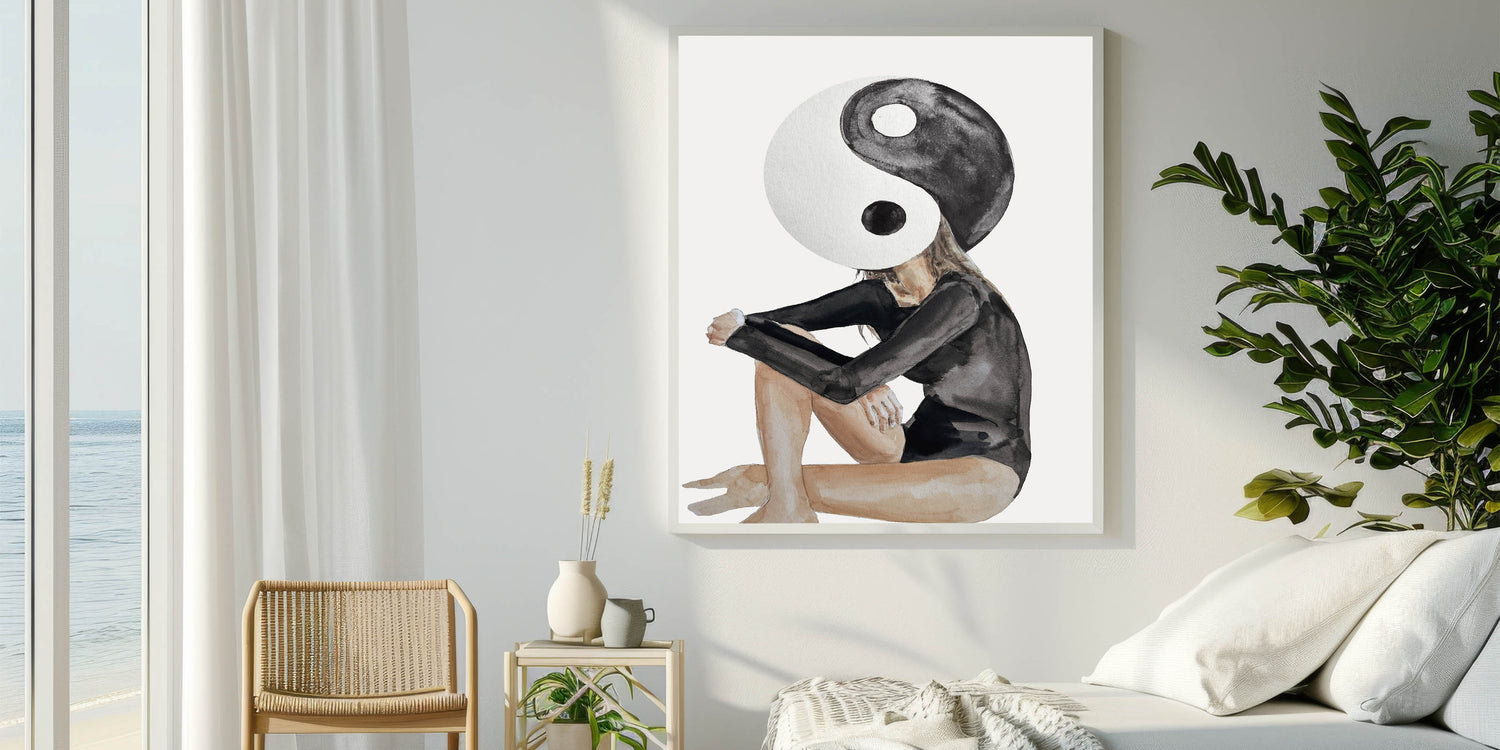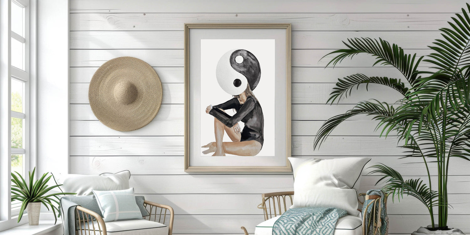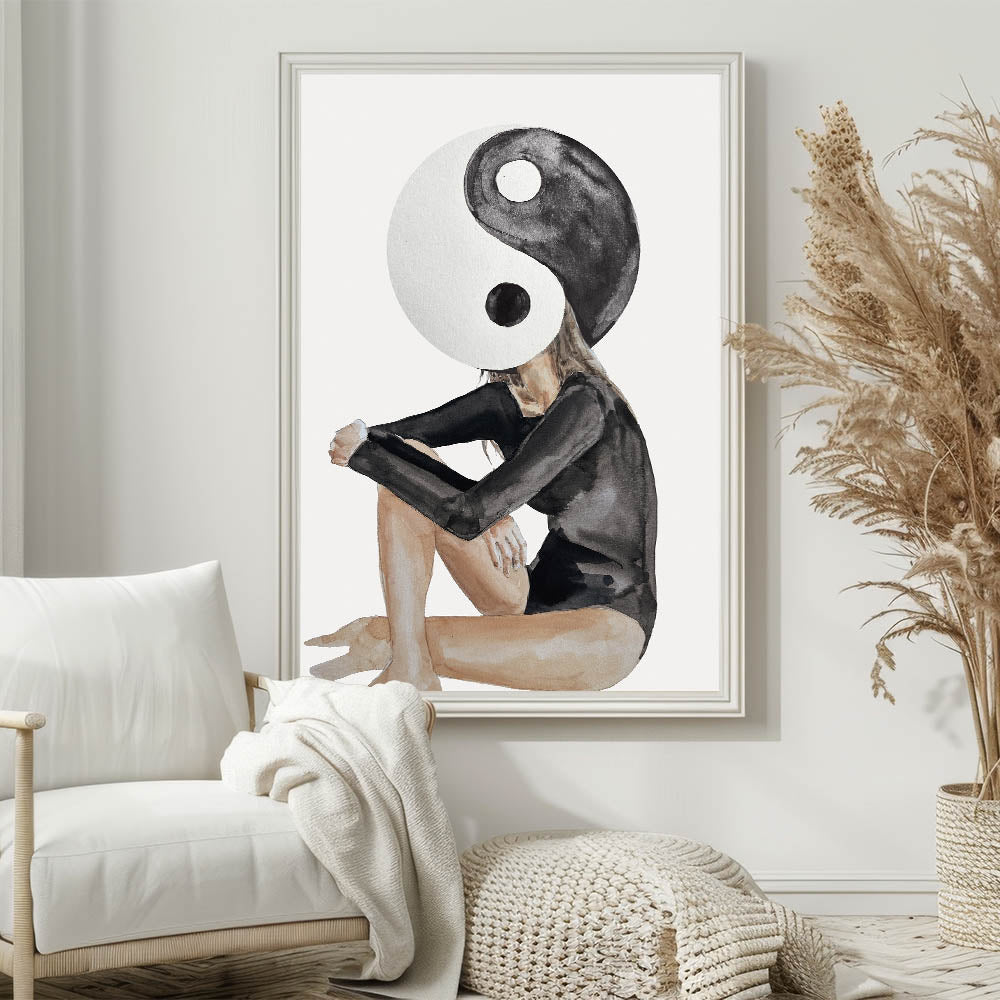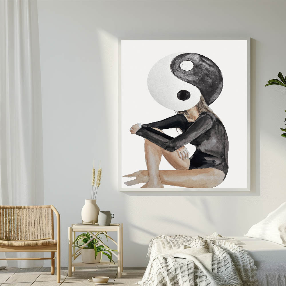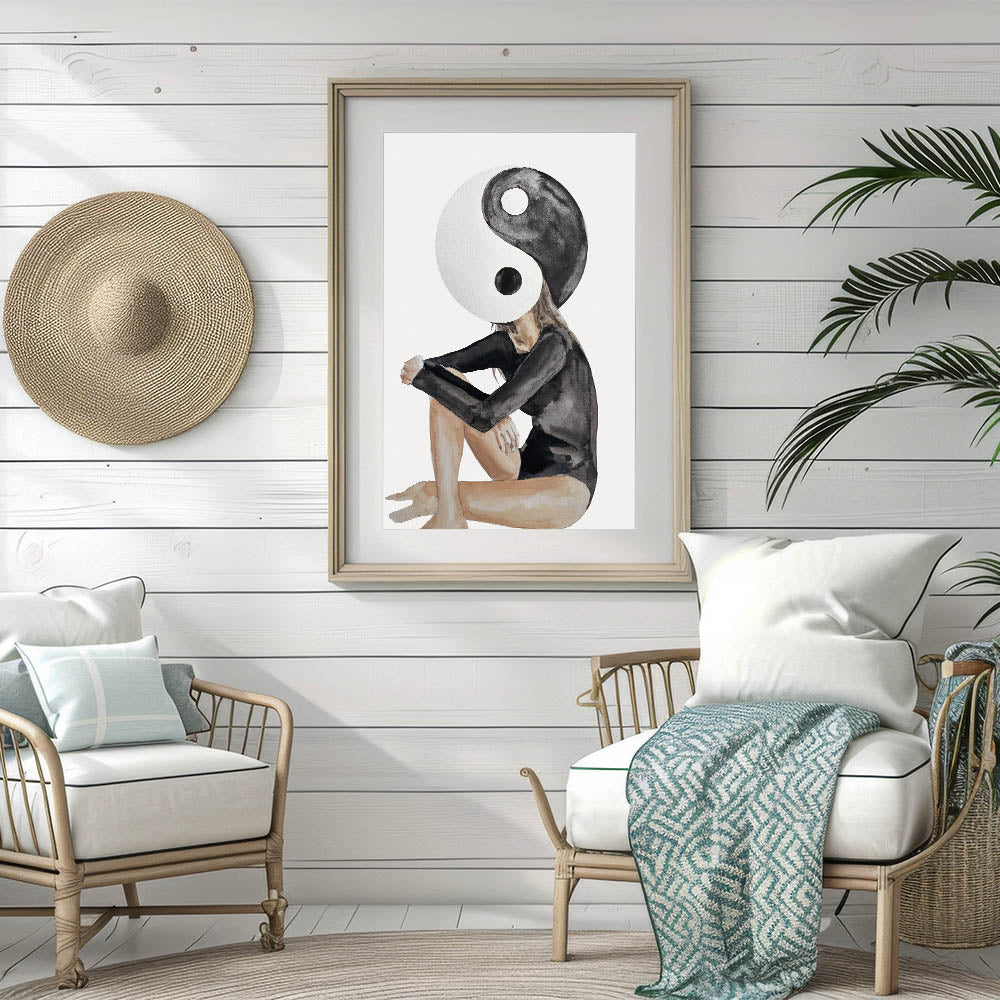 Add a bold and contemporary touch to your decor with this striking coastal wall art featuring a woman with a Yin Yang symbol as her head. This modern interpretation of balance and harmony blends beautifully with coastal and beach-themed decor, creating a dynamic focal point in any space. The black and white contrast in the Yin Yang design stands out, while the muted tones of the woman’s figure maintain an air of serenity, making it a versatile piece for any room.