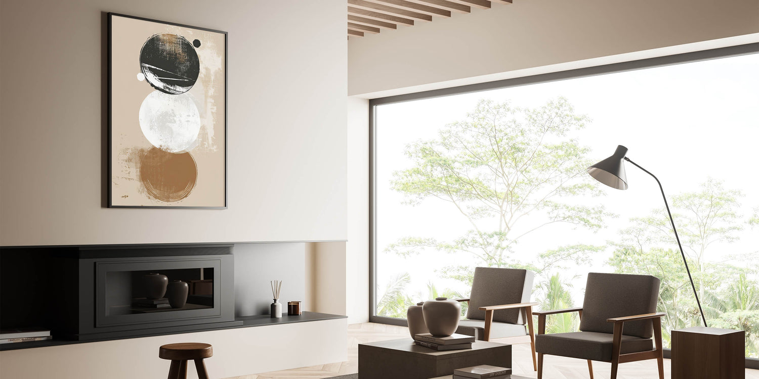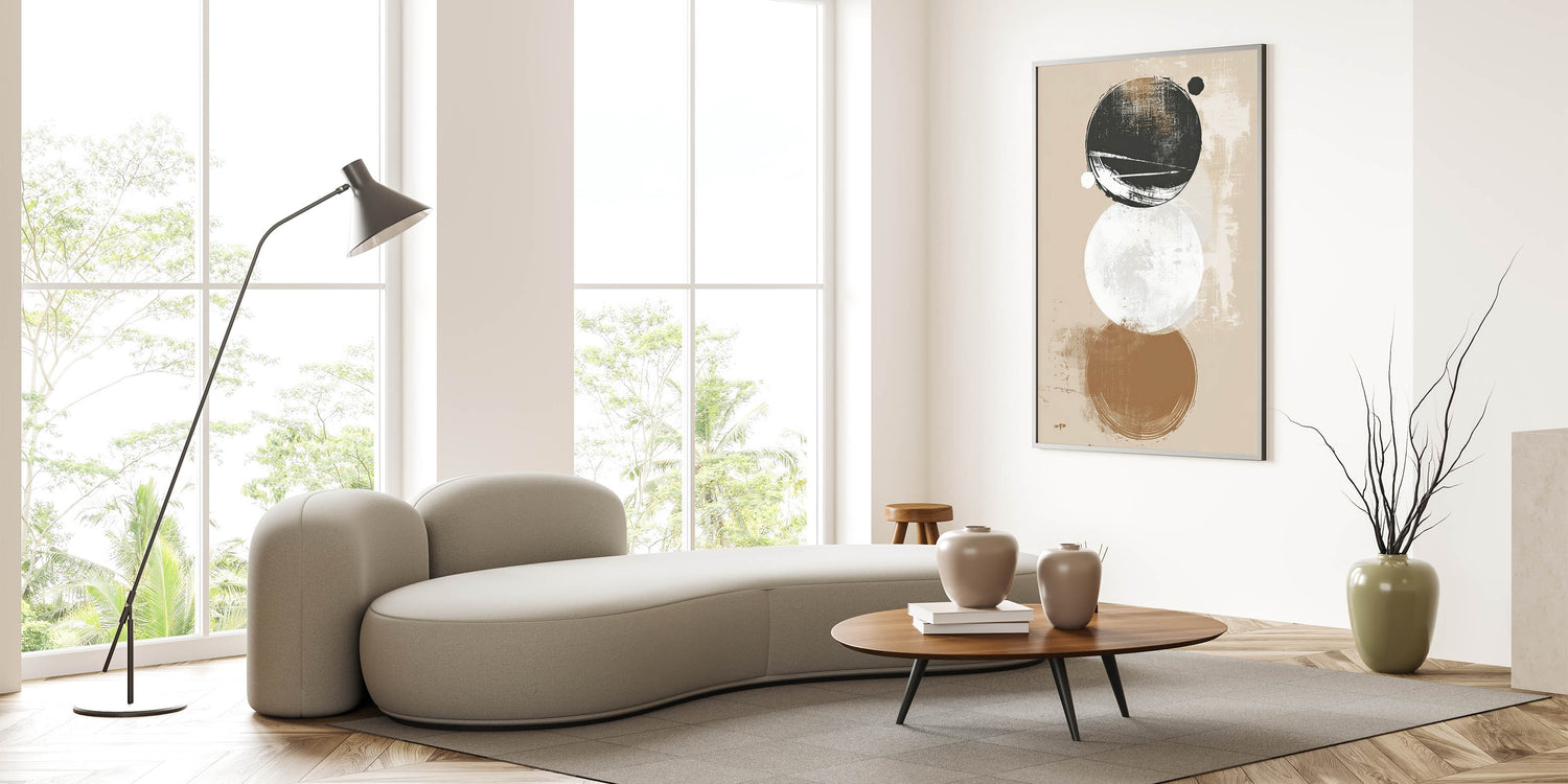 This minimalist geometric print is designed for those who appreciate modern art with a subtle edge. Its earthy and monochromatic tones blend seamlessly with contemporary interiors, making it a perfect addition to any room in need of a stylish, understated art piece.