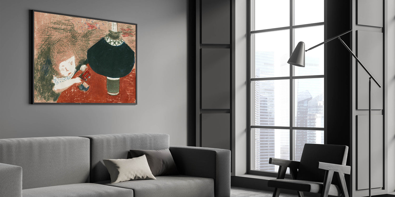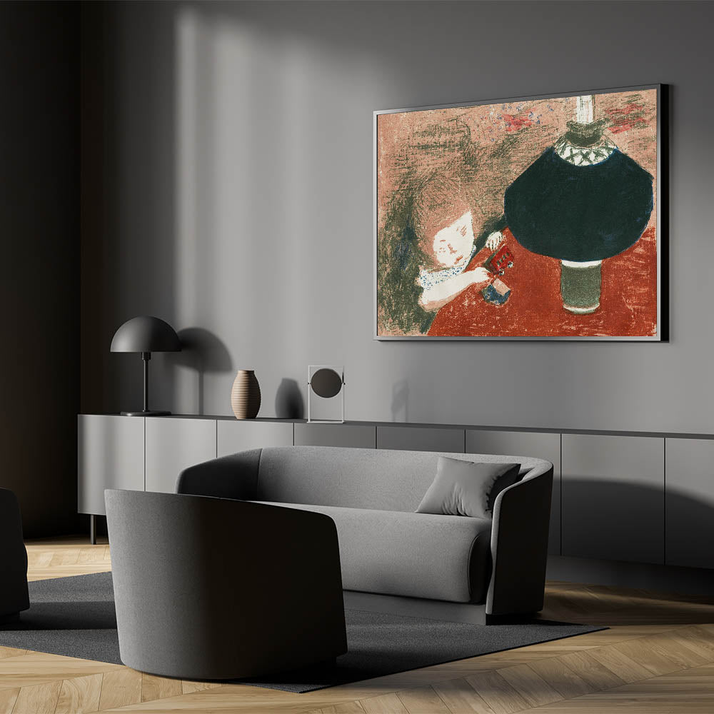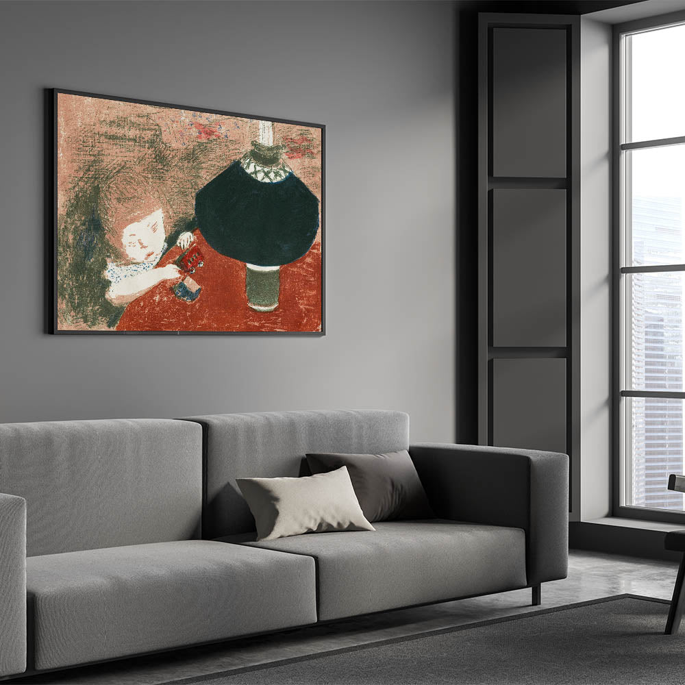 This delightful piece of modern wall art features Pierre Bonnard’s 1896 painting, "Child with Lamp." With its warm, earthy tones and soft textures, this artwork captures the intimate moment of a child playing quietly under the soft glow of a lamp. Bonnard’s characteristic use of color and light evokes a cozy, nostalgic atmosphere, making it a perfect choice for creating a sense of warmth and comfort in your space. Ideal for fans of impressionist art, this piece complements a variety of contemporary decor styles.