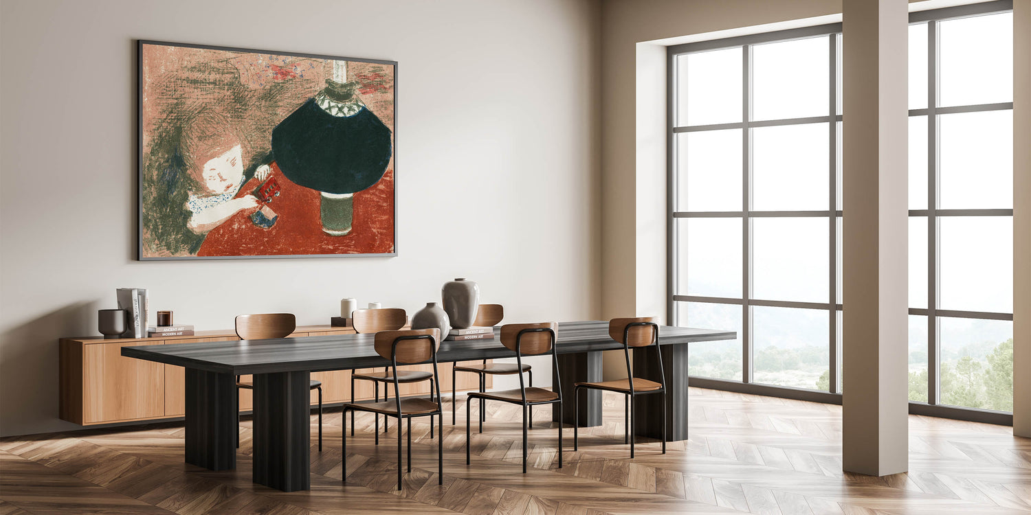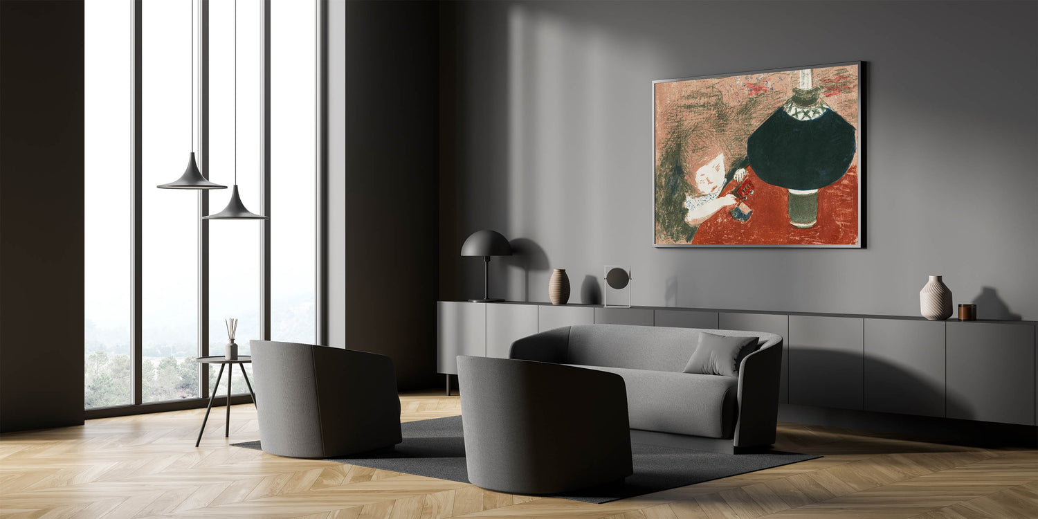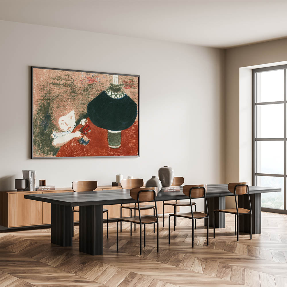 This delightful piece of modern wall art features Pierre Bonnard’s 1896 painting, "Child with Lamp." With its warm, earthy tones and soft textures, this artwork captures the intimate moment of a child playing quietly under the soft glow of a lamp. Bonnard’s characteristic use of color and light evokes a cozy, nostalgic atmosphere, making it a perfect choice for creating a sense of warmth and comfort in your space. Ideal for fans of impressionist art, this piece complements a variety of contemporary decor styles.
