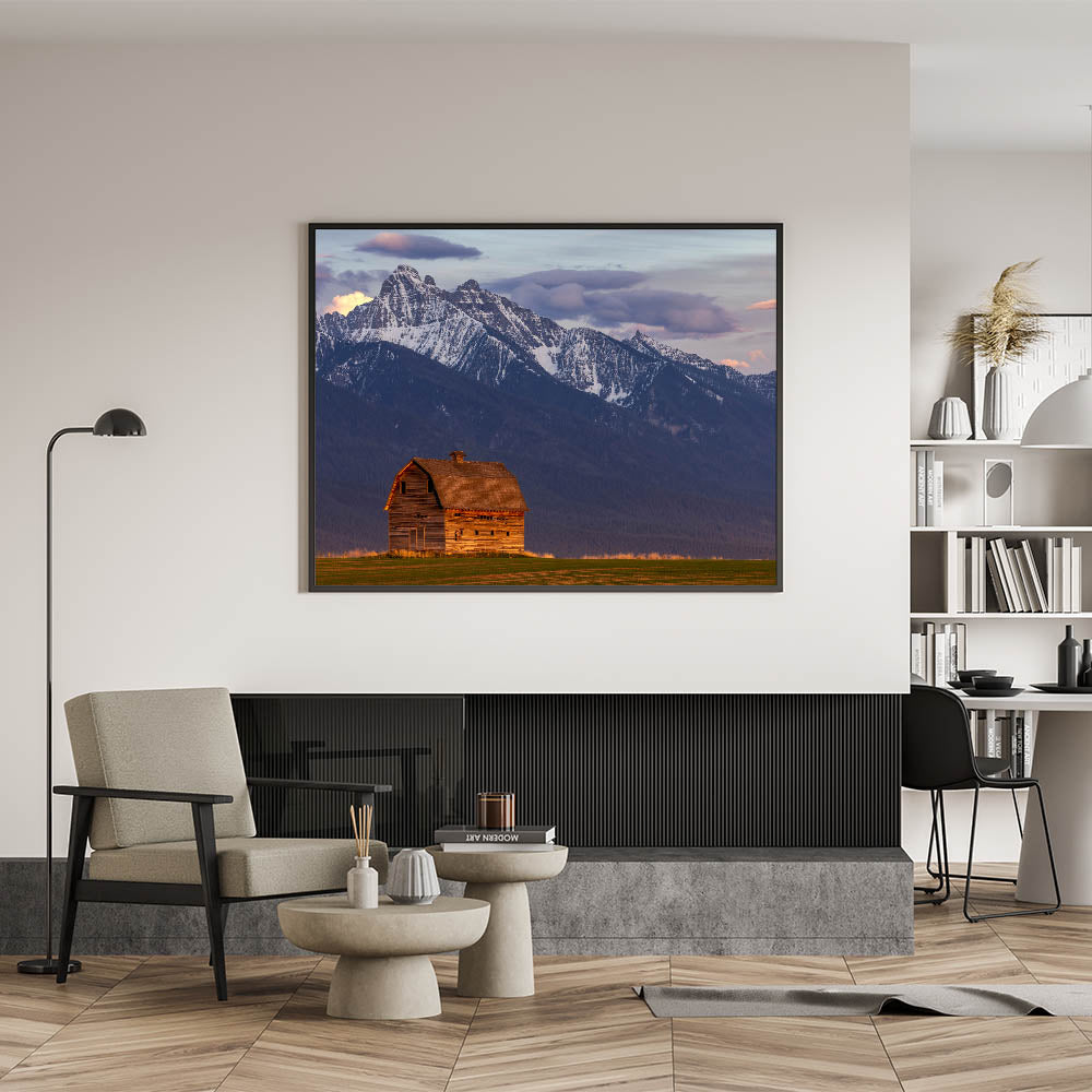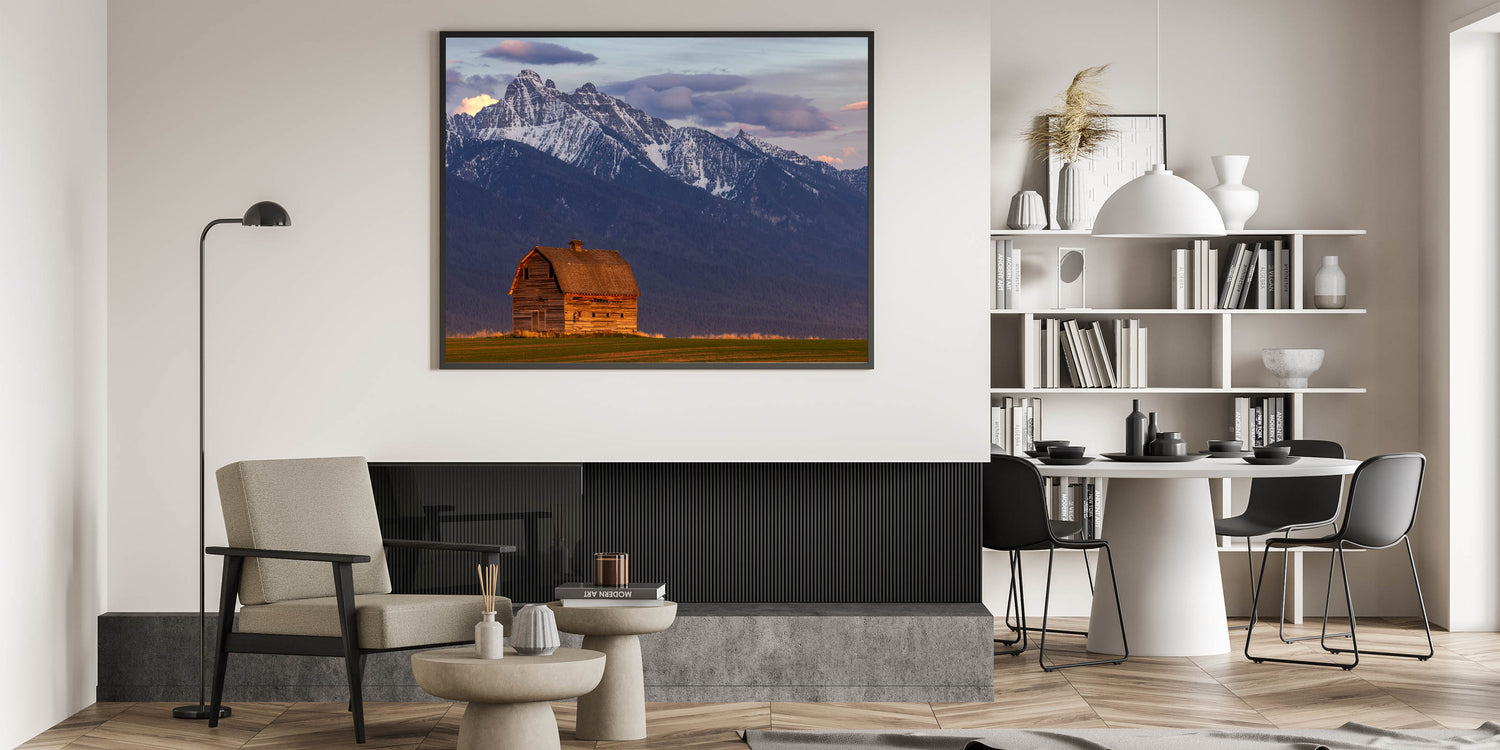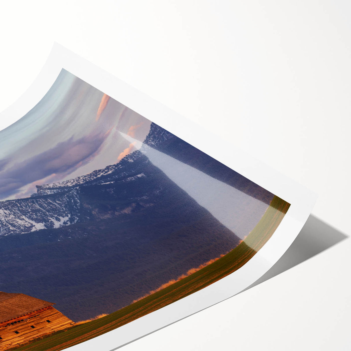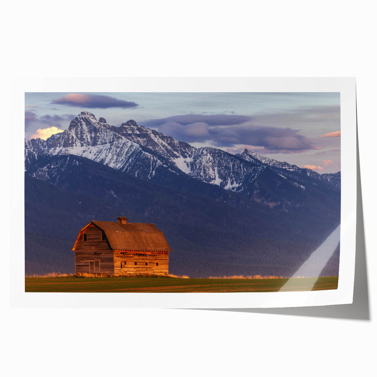 Montana Custom Art - Rustic Barn and Mountain Landscape Fine Art Print