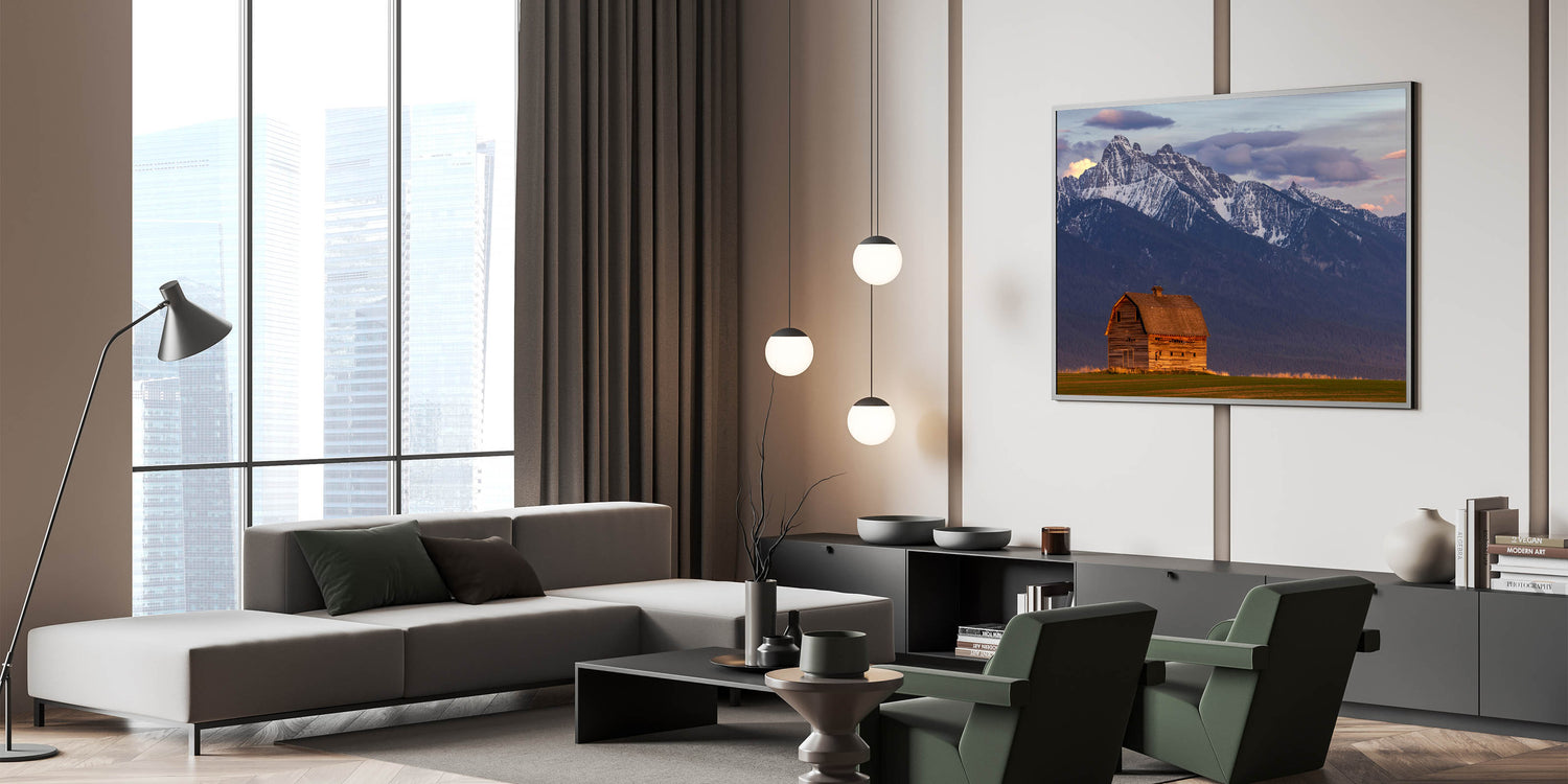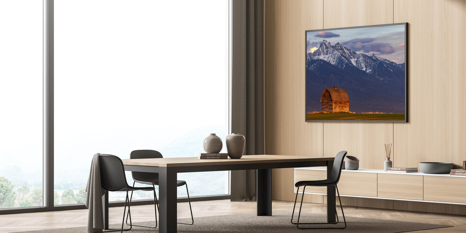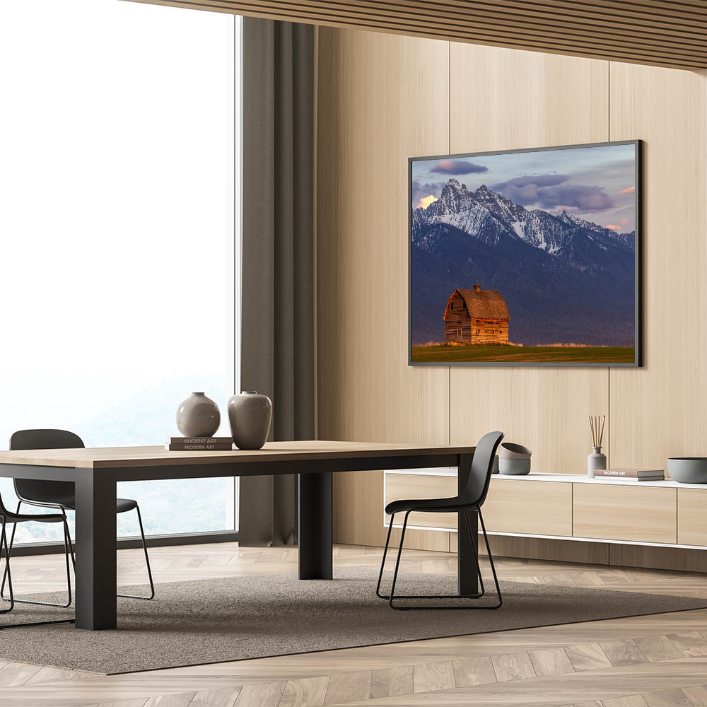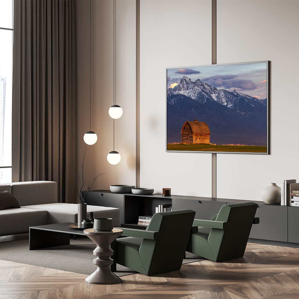 Montana Custom Art - Rustic Barn and Mountain Landscape Fine Art Print