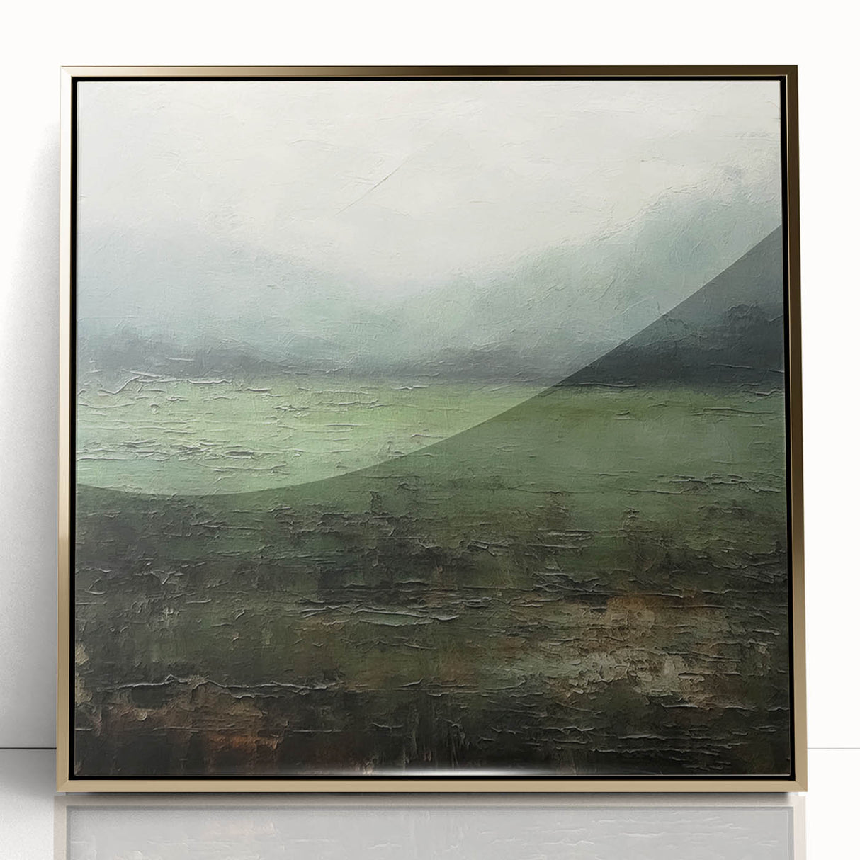 This moody abstract landscape captures the misty essence of a quiet green field with deep, earthy tones and a textured surface. The soft blending of greens and browns evokes a peaceful, rustic atmosphere, perfect for adding depth and intrigue to any space. With its misty, organic look, this artwork brings the tranquility of nature into your home, making it a great fit for modern, farmhouse, and nature-inspired decor styles.