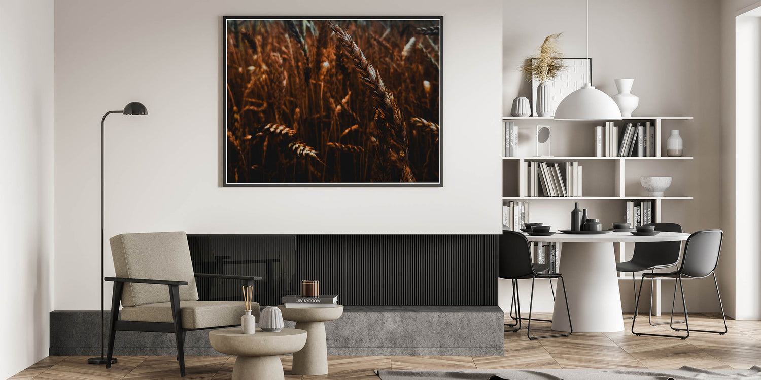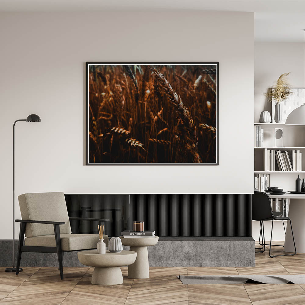 Capture the rich textures and deep tones of the countryside with this stunning rustic wall art featuring a moody wheat field. The intricate details of the wheat stalks, illuminated in the dim light, create a captivating and dramatic atmosphere, making this artwork a perfect addition to any farmhouse or rustic-themed decor. The dark tones of the wheat field bring a sense of depth and elegance, perfect for creating a cozy, yet sophisticated ambiance in your living room, kitchen, or hallway.