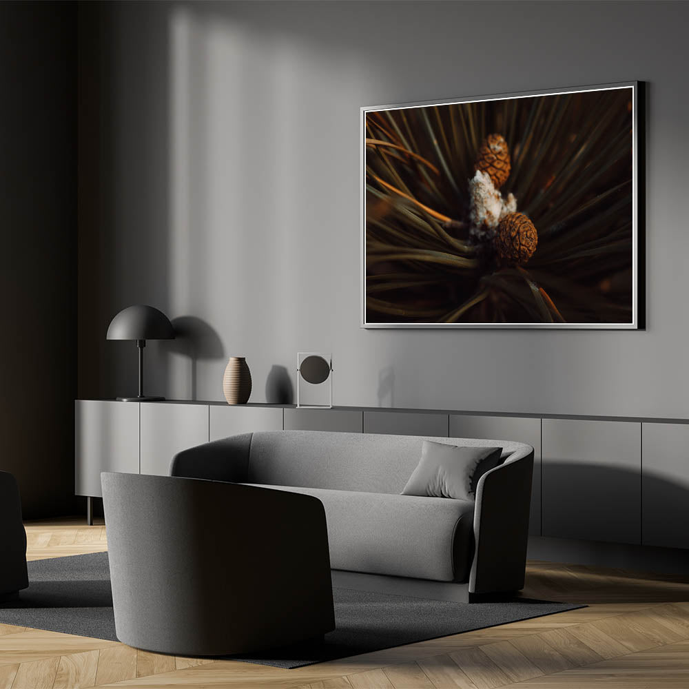 This artwork is perfect for anyone who loves rustic nature scenes and wants to bring a natural touch to their home. The close-up of the pinecones evokes a sense of calm and connection to the outdoors, making it a wonderful choice for adding a cozy, organic feel to any space.