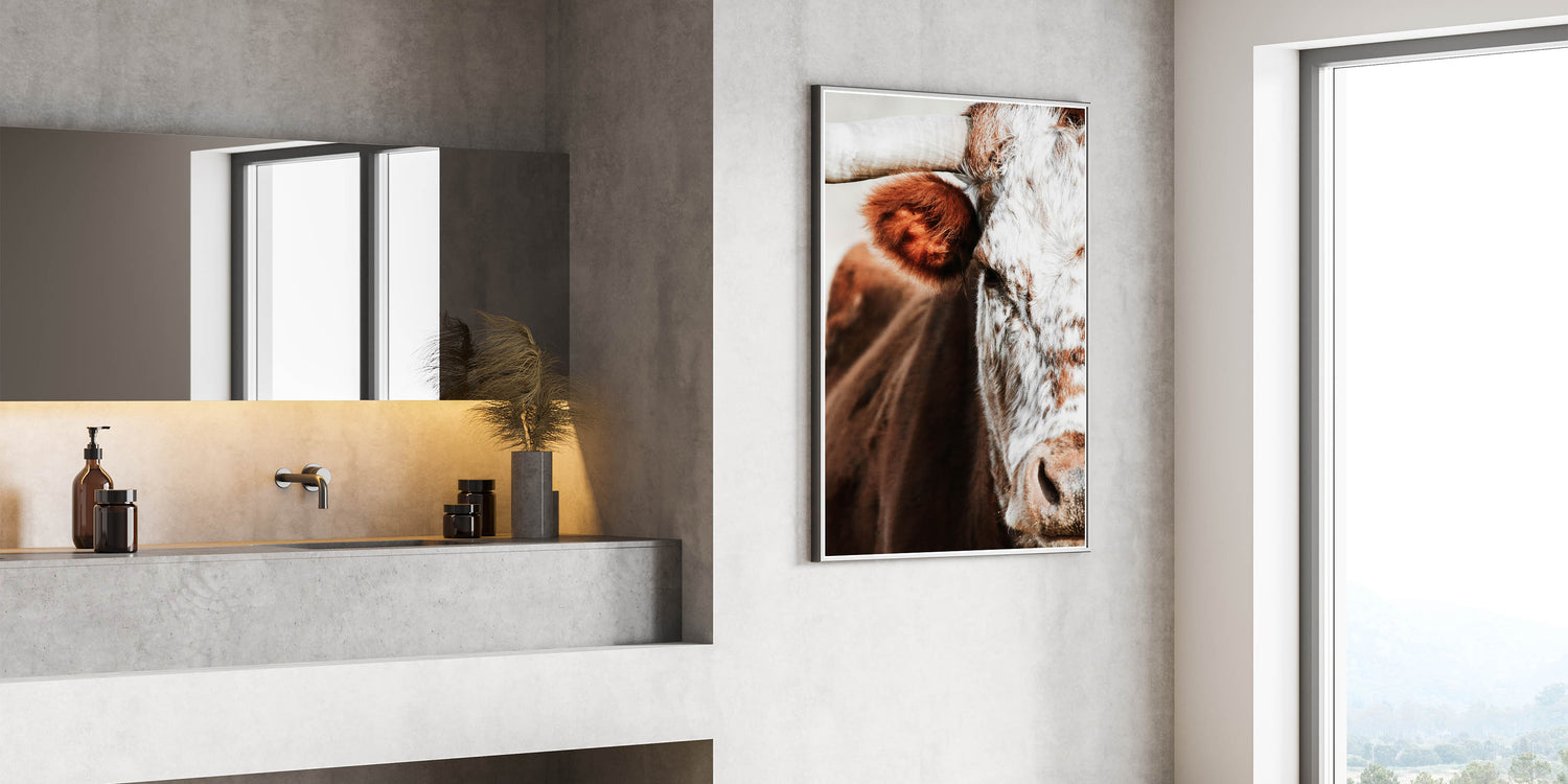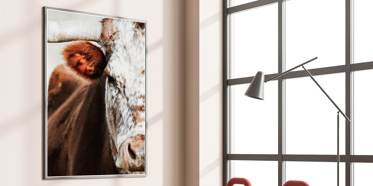 - High-resolution print with rich textures that bring the cow's natural beauty to life
