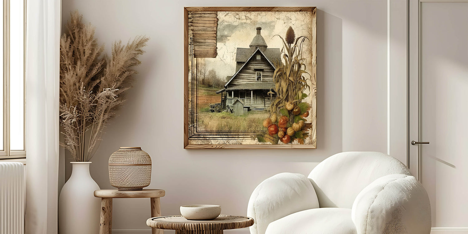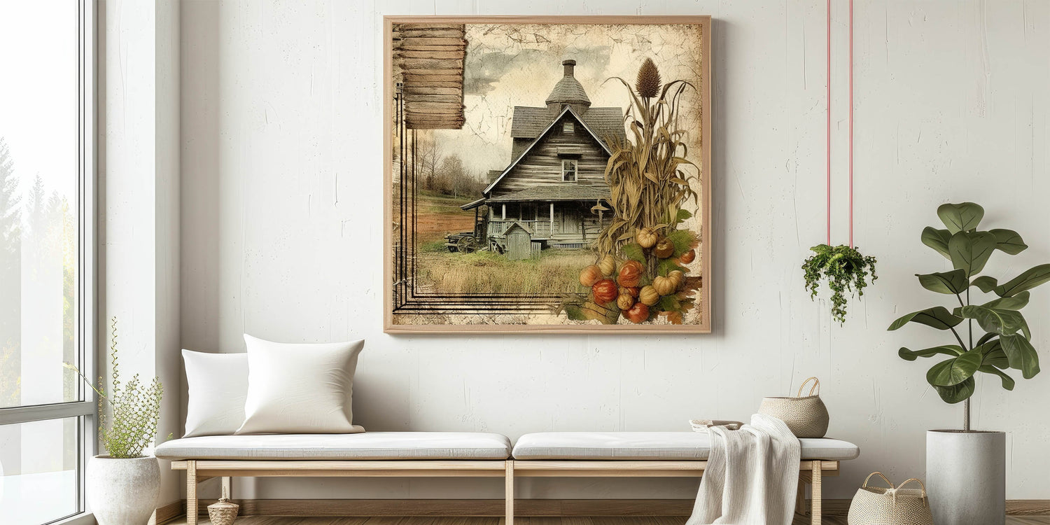 This farmhouse wall art is perfect for those who love vintage farmhouse prints and rustic charm. Whether you’re decorating for the fall or looking to enhance your home year-round, this piece brings the essence of country living into your decor.