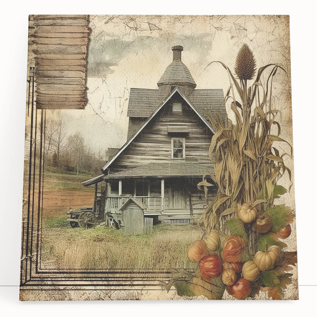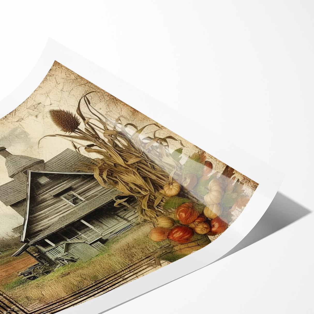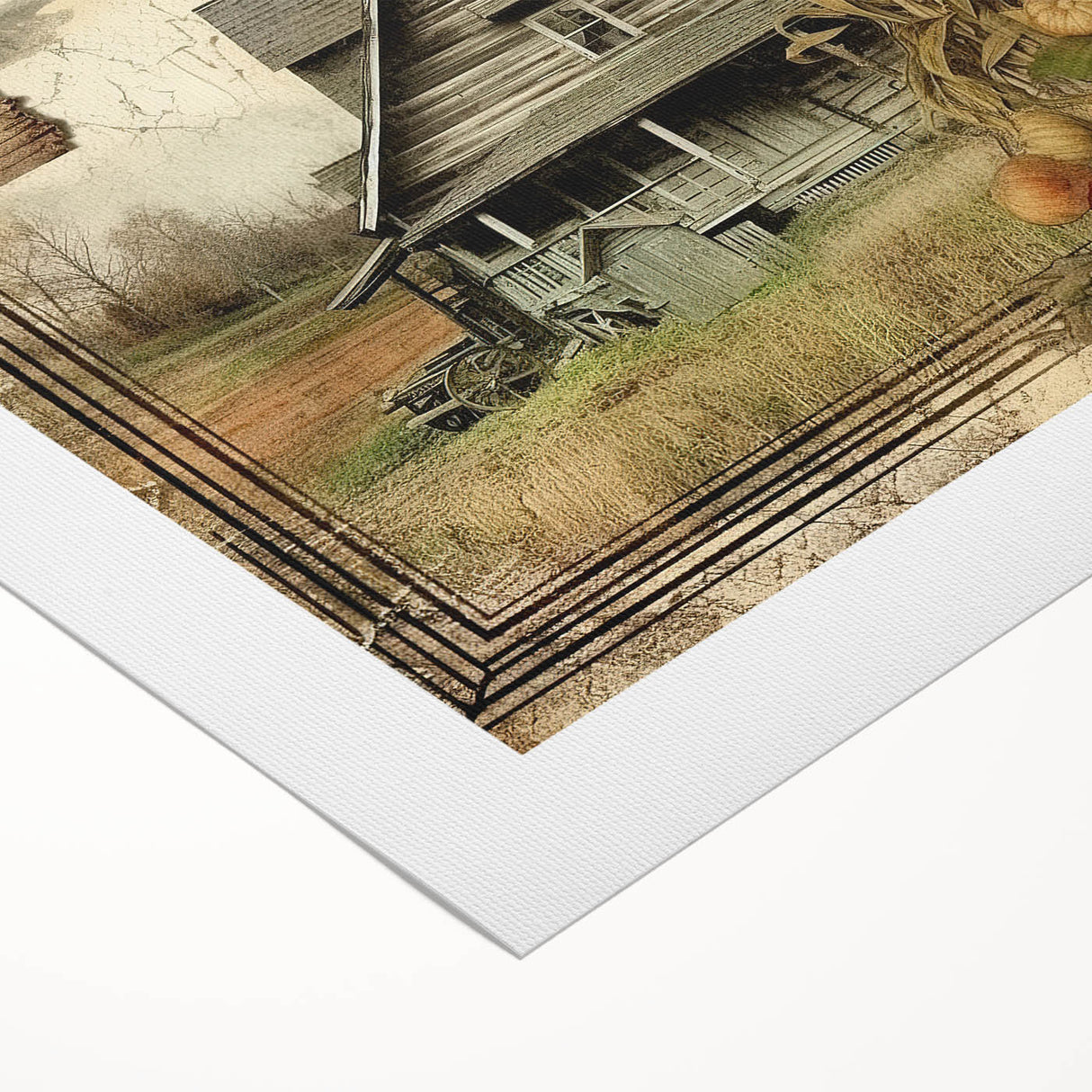 Rustic Farmhouse Decor with Barn and Corn Stalks - Country Style Art
