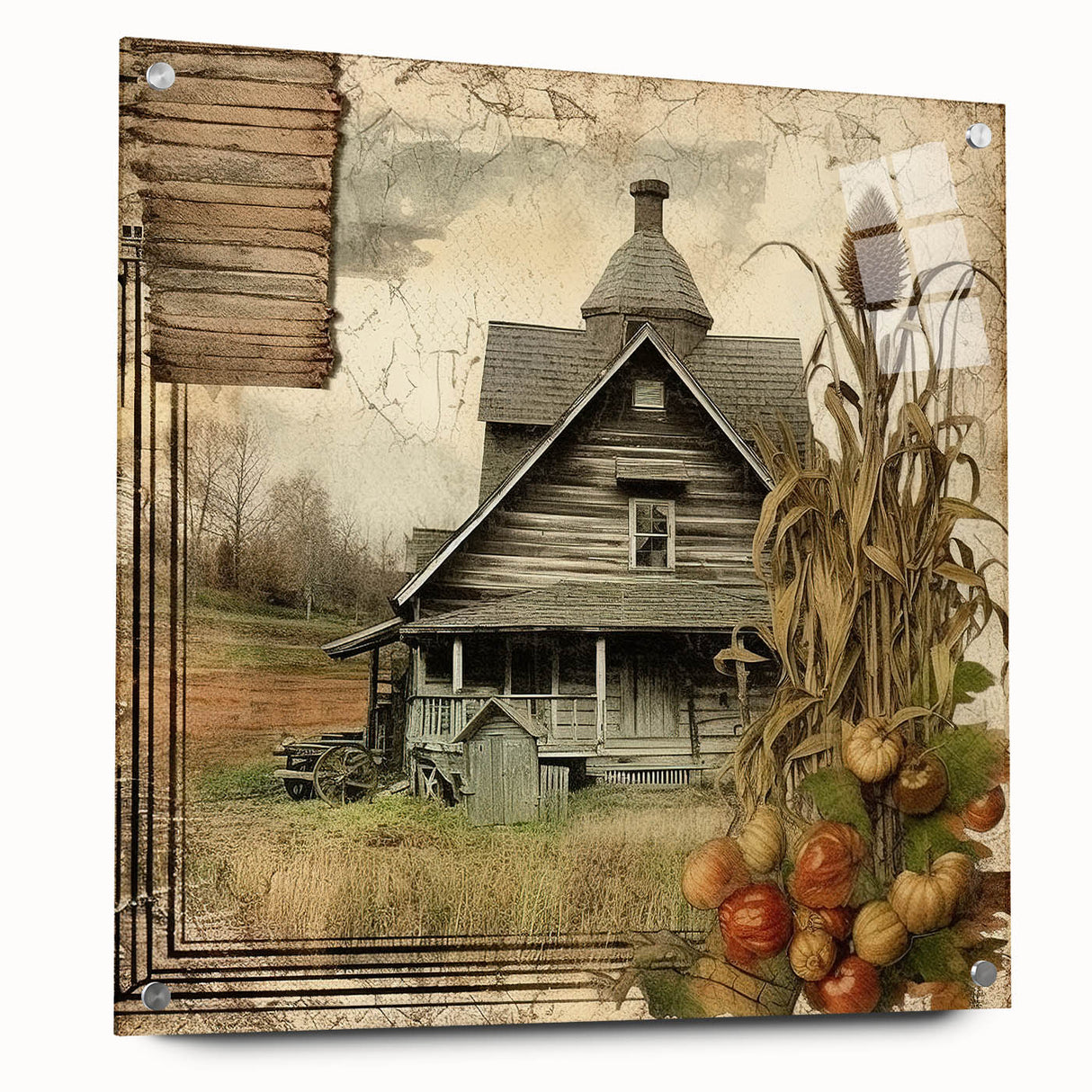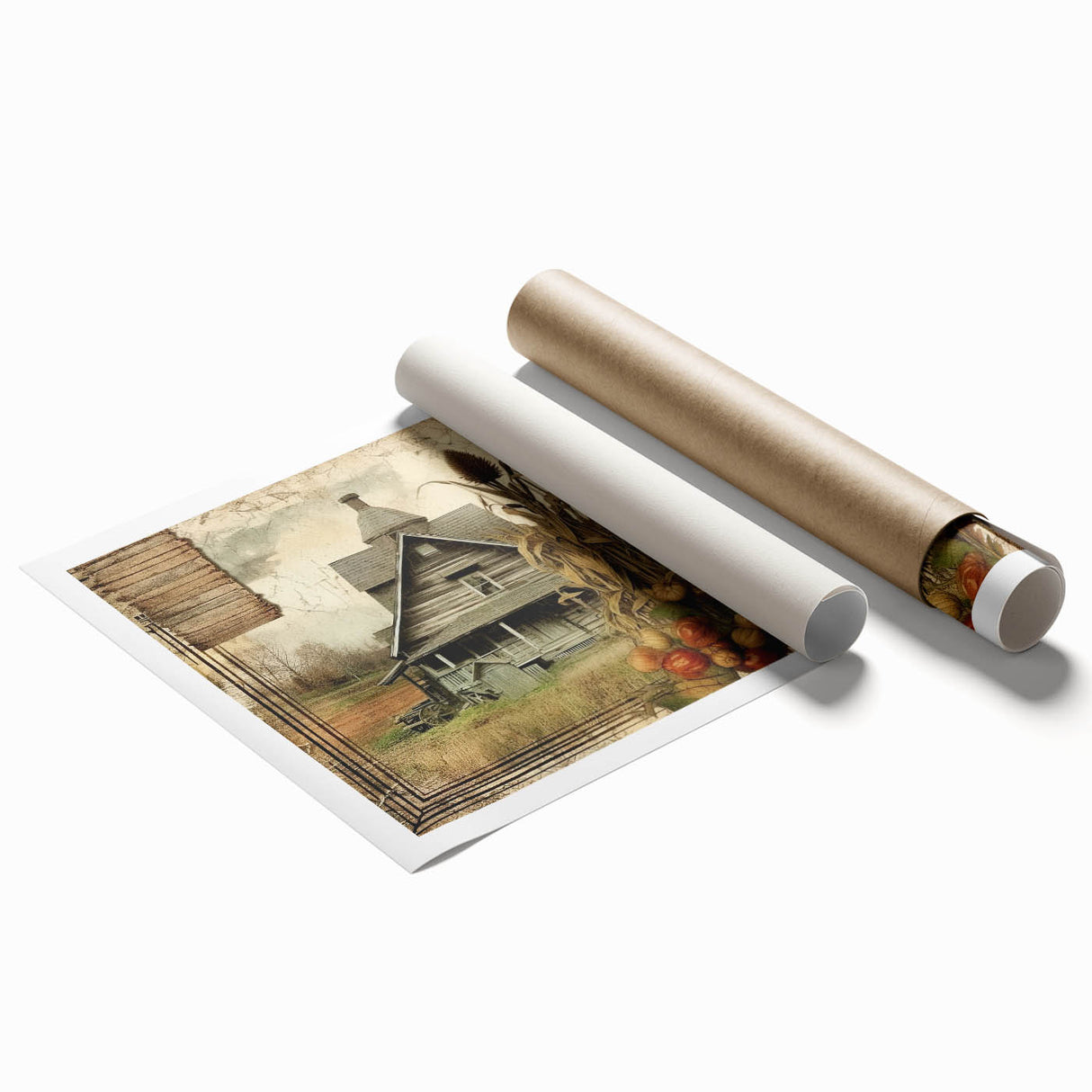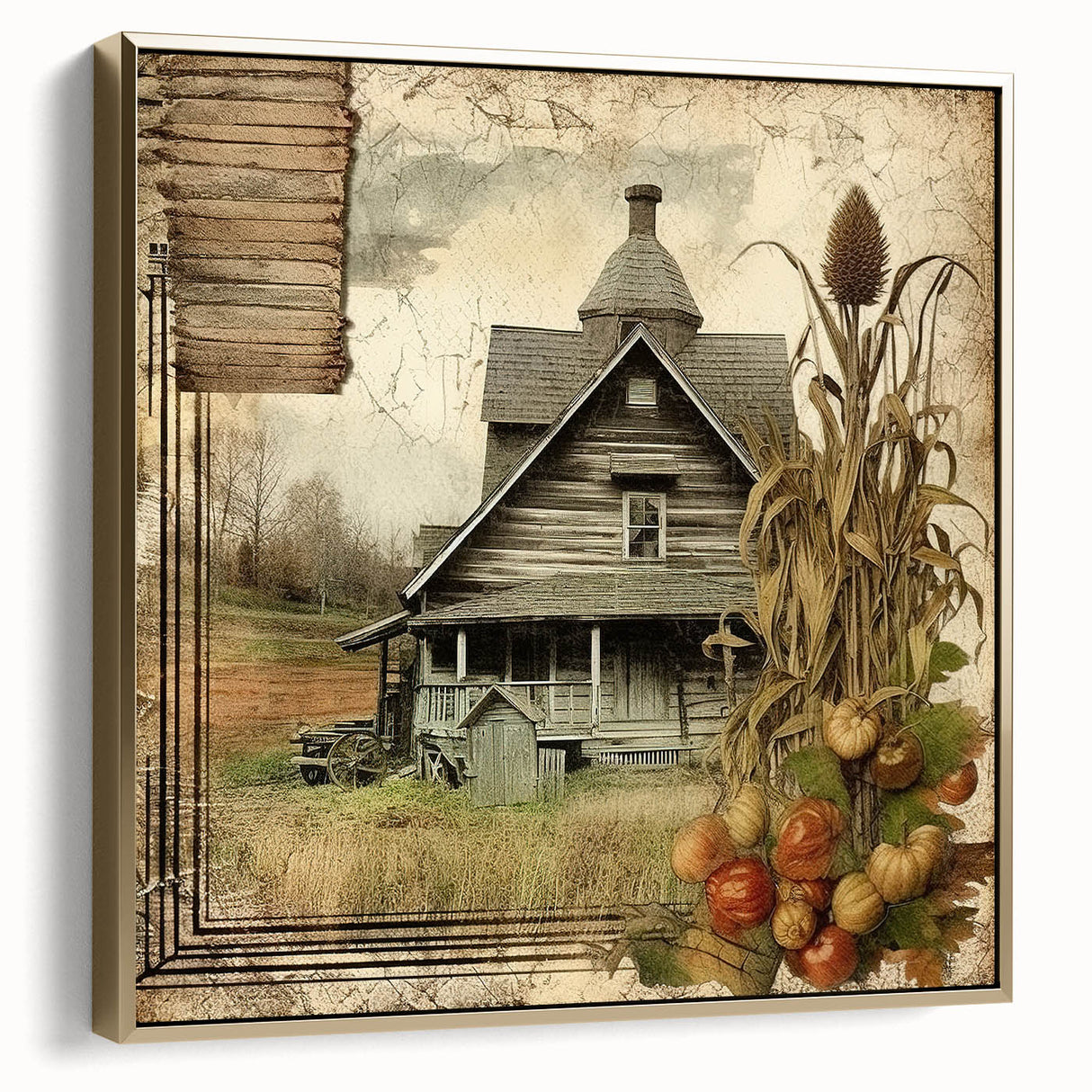 Rustic Farmhouse Decor with Barn and Corn Stalks - Country Style Art