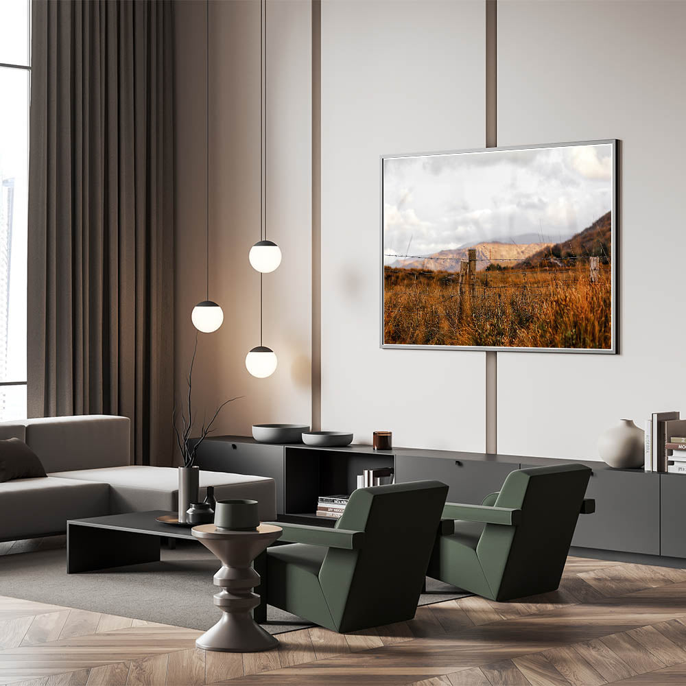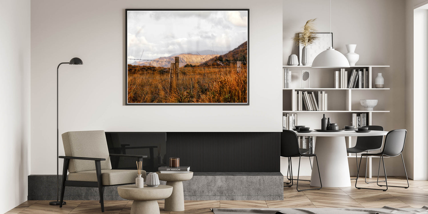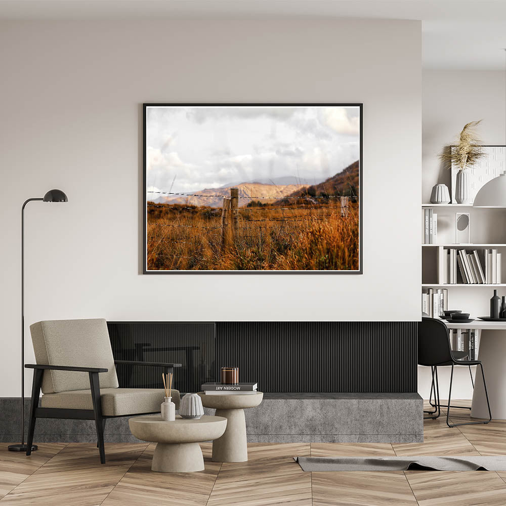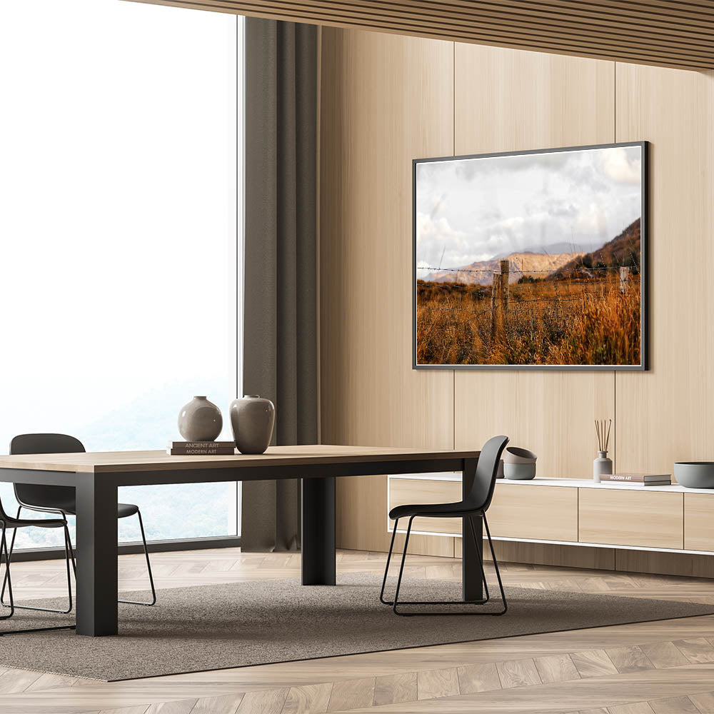 This wall art of a rustic fence in a golden field is perfect for anyone looking to bring the peaceful charm of the countryside into their home. It’s a timeless piece that adds warmth and character to any space.