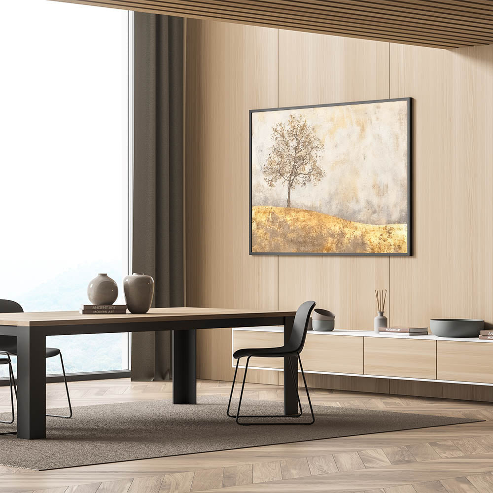Rustic Golden Tree Landscape - Minimalist Abstract Canvas Wall Art