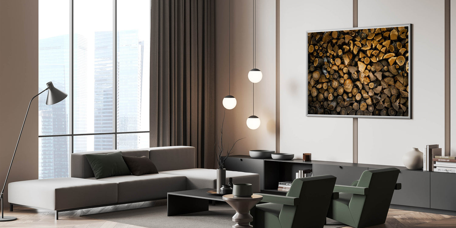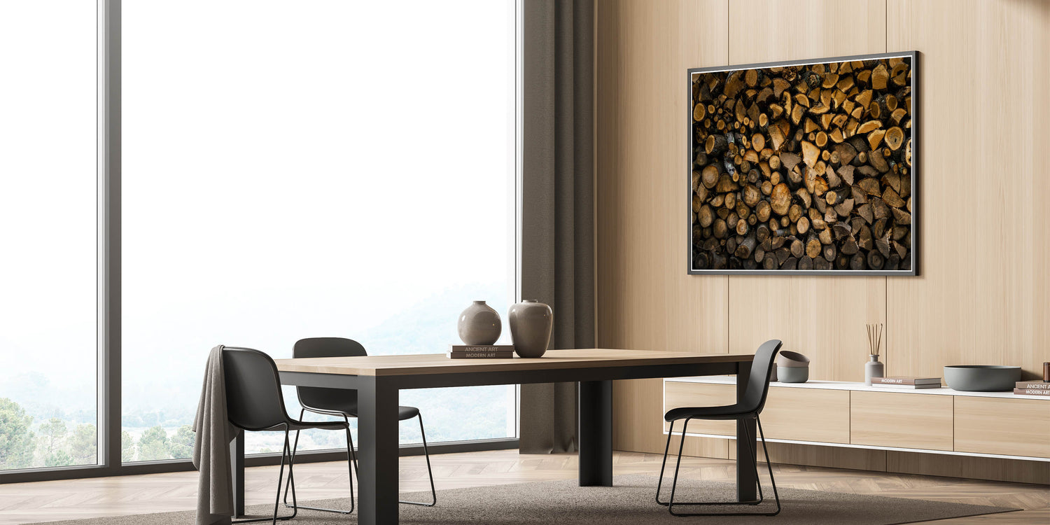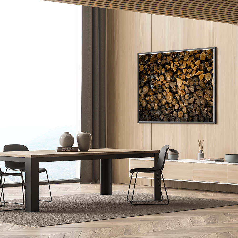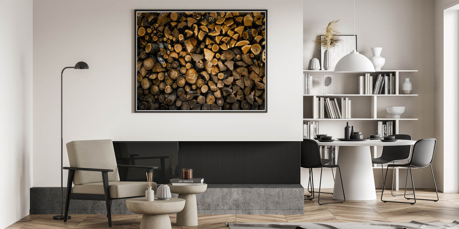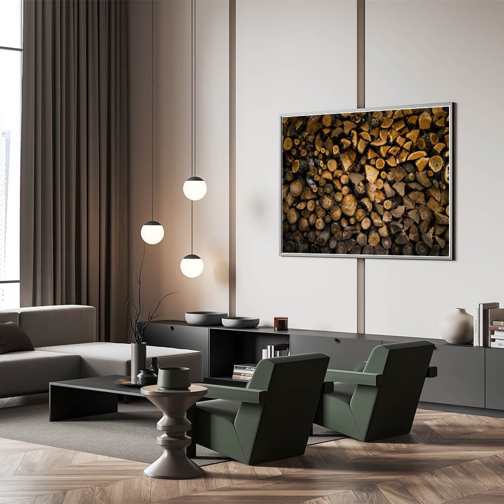 - High-quality print that showcases the intricate details of each log, highlighting the natural beauty of the wood