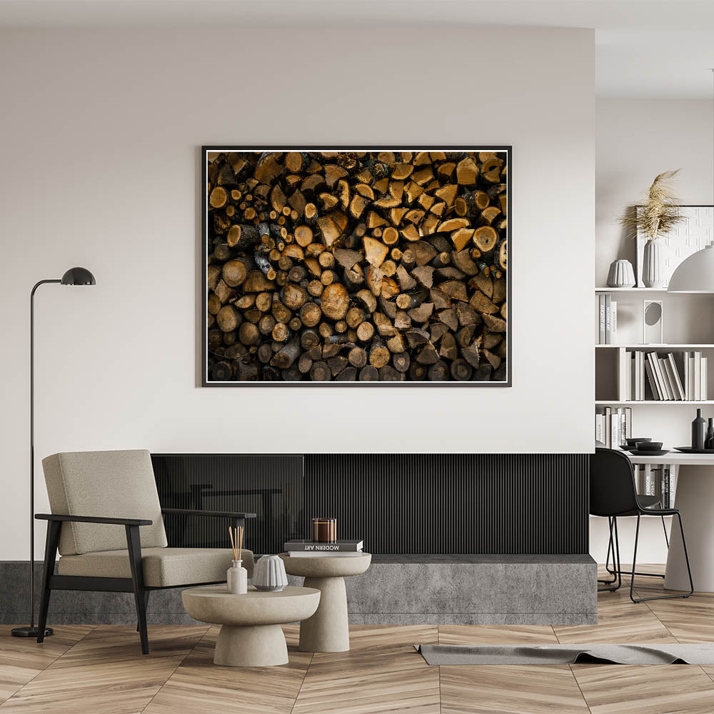 Celebrate the raw beauty of nature with this striking rustic wall art showcasing a carefully stacked pile of firewood. The intricate textures of the wood grains and the warm, earthy tones make this piece an ideal addition to any farmhouse-style art prints collection. Perfect for enhancing the cozy, natural feel of your home, this vintage-inspired wall art captures the essence of rustic living and hardworking countryside life.