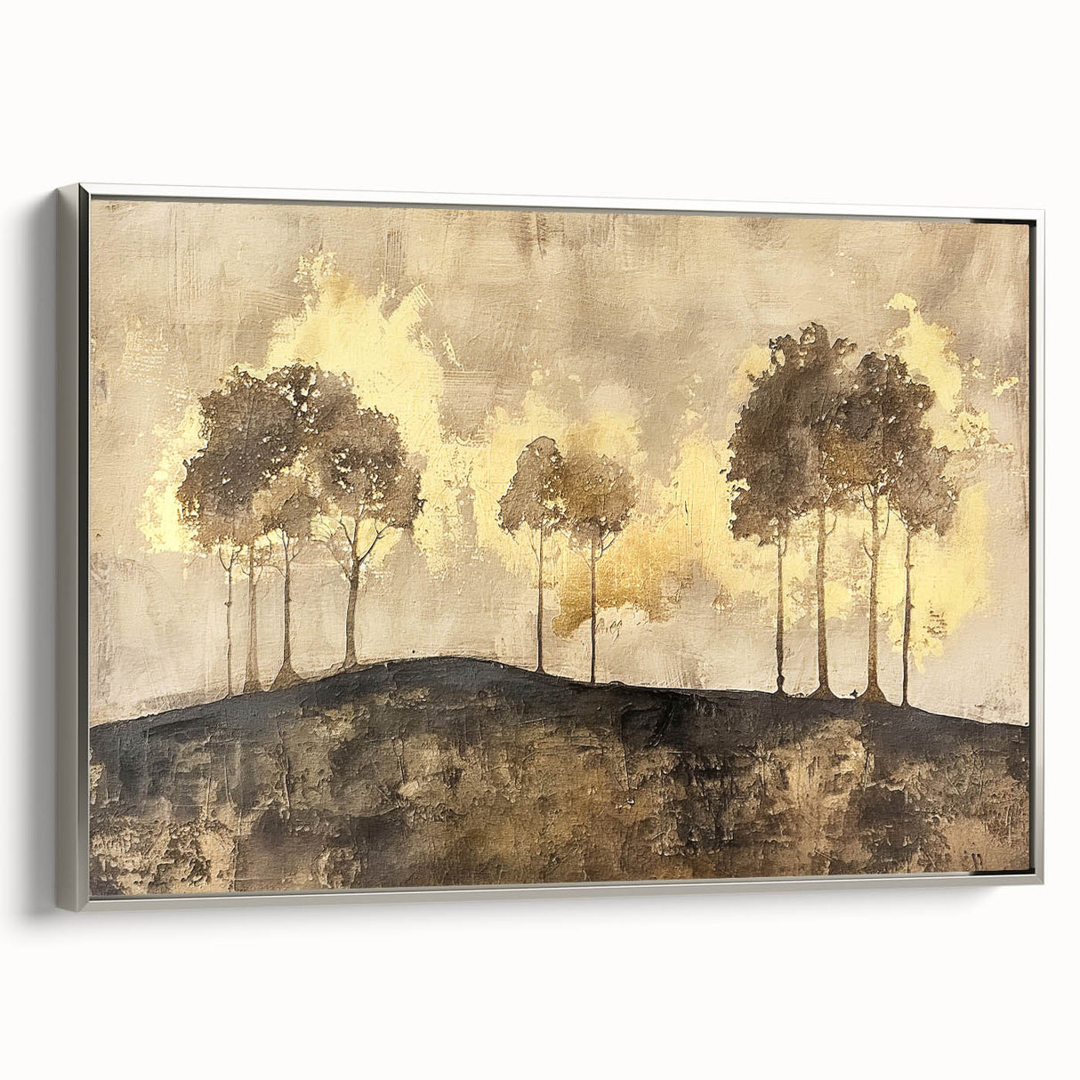 Rustic Tree Landscape Abstract Art – Golden Glow Canvas for Modern Decor